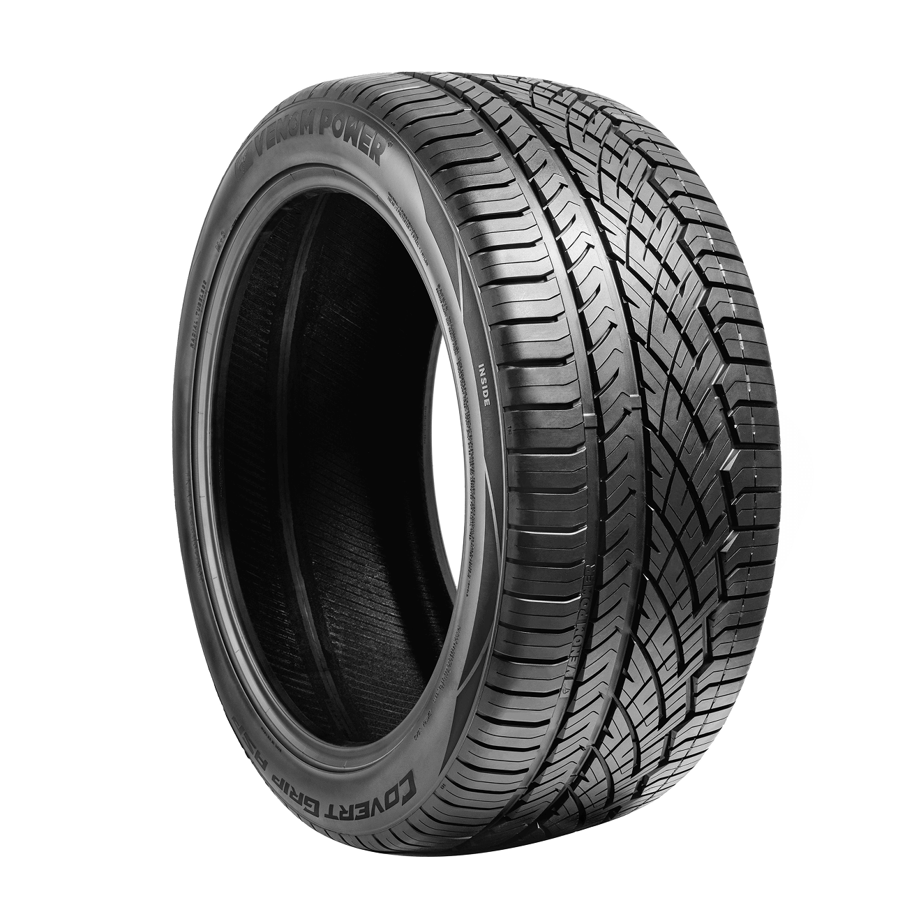 The Covert Grip ASP is the flagship all-season tire model in Venom Power's new Covert Grip series, designed to redefine the limits of handling and performance. Its innovative asymmetrical tread design adapts to diverse driving conditions, ensuring enhanced grip, confident cornering, and reliable traction whether navigating wet highways, icy winter roads, or scorching summer asphalt.