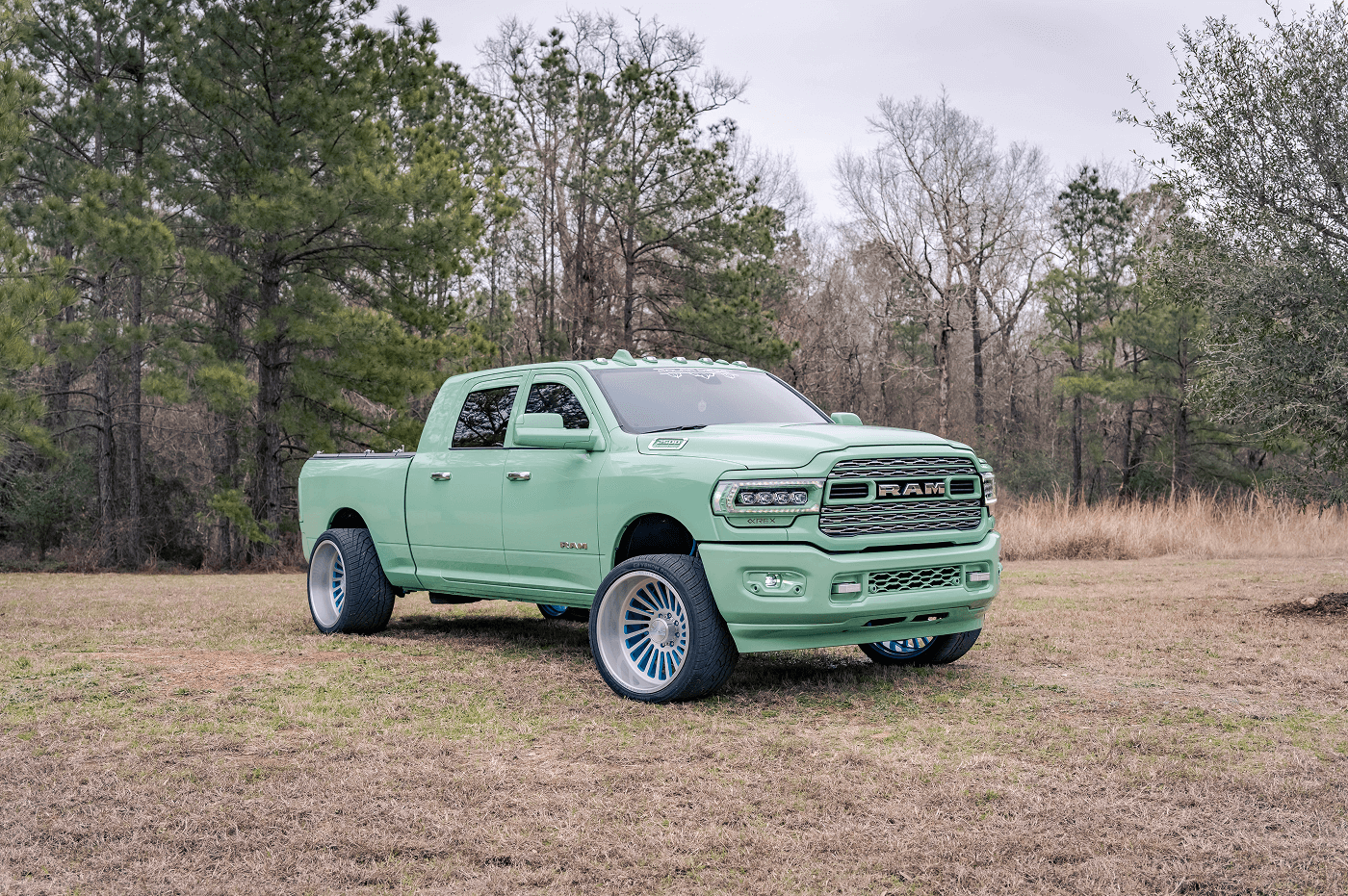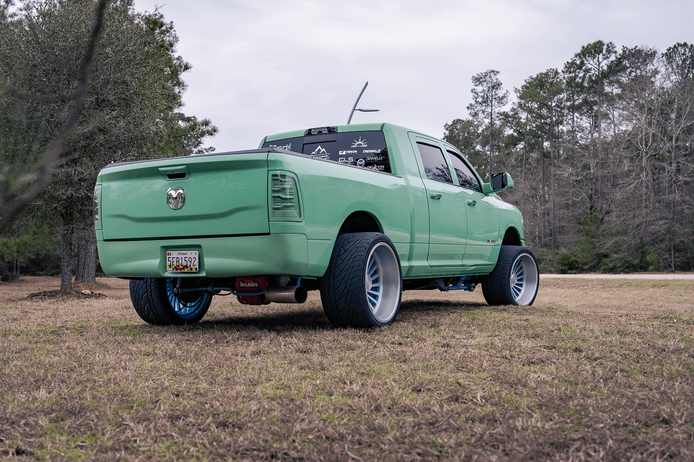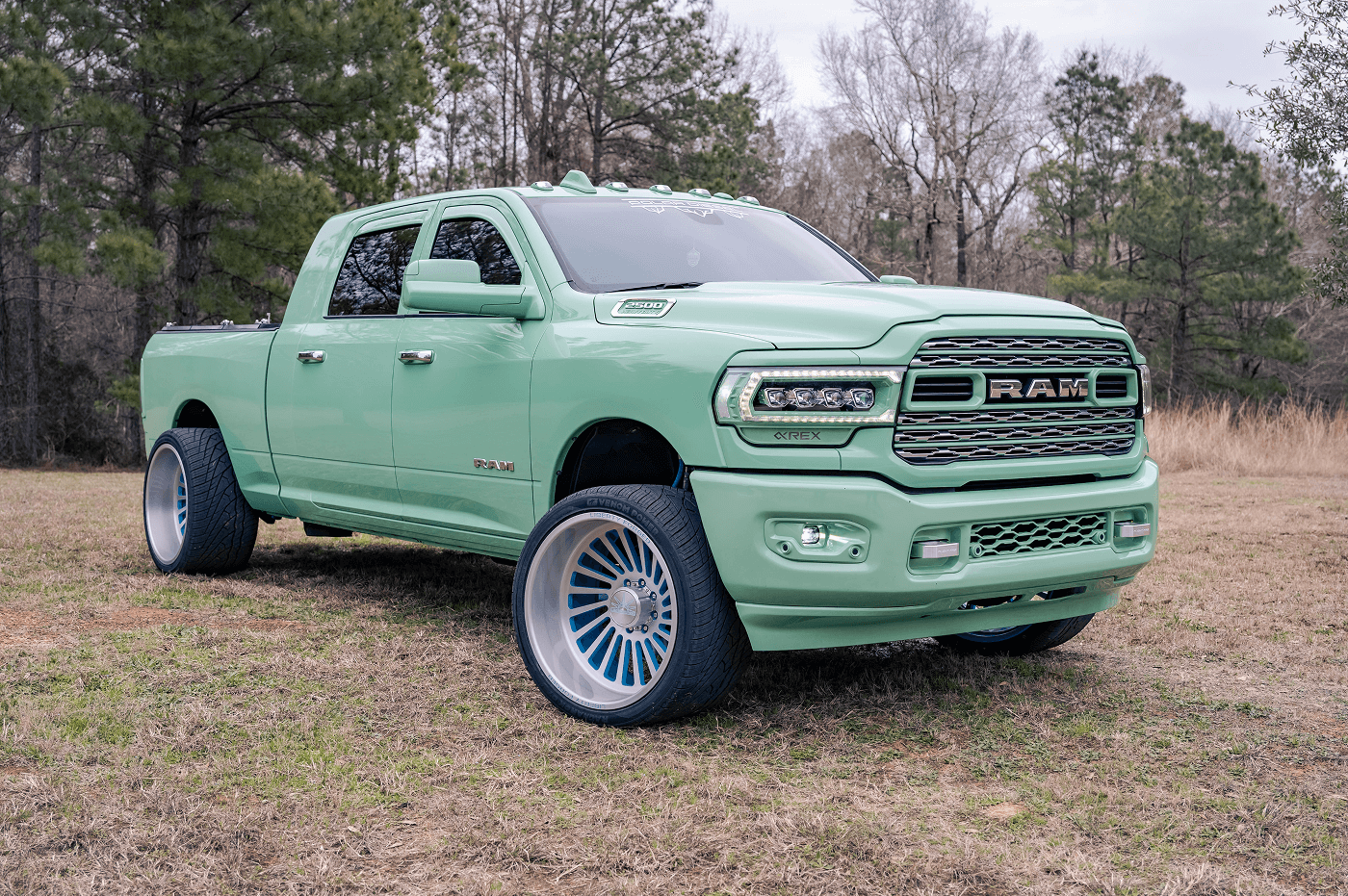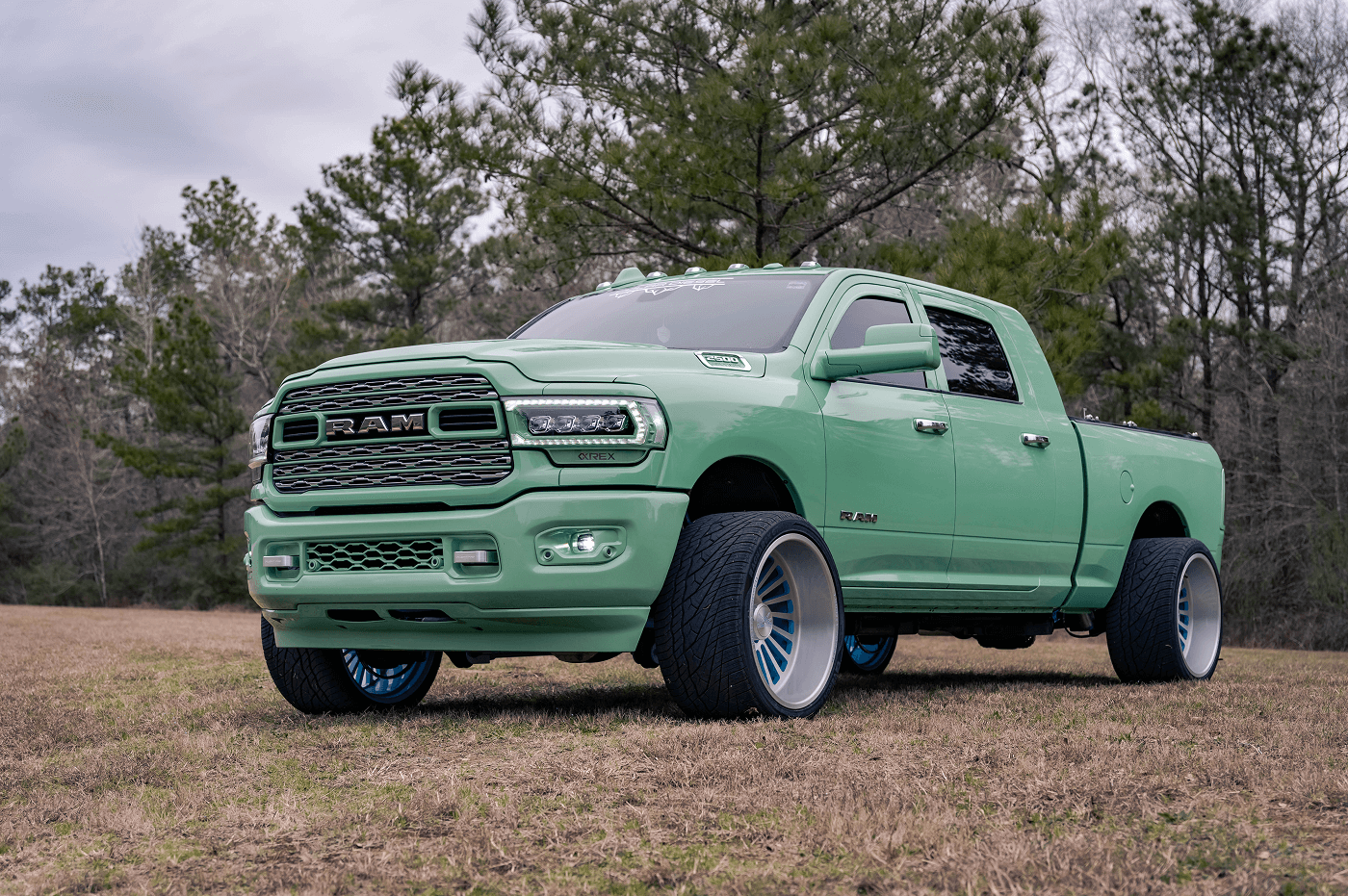 Danny Parker’s Dodge Ram 2500 Mega Cab, on Instagram at @danny.polar, is a mint green stunner that blends bold aesthetics with serious performance. This truck rolls on a squared setup of Venom Power Ragnarok GTS 405/25ZR24 tires, paired with Liberty Forged wheels, delivering a unique stance and street-ready grip. This eye-catching build features AlphaRex lights and BAMF LEDs for illumination, a Banks Power system for enhanced performance, and a Fass Fuel Systems upgrade for reliability. The Kicker Audio comes alive with a Mobile Toys Inc sound system, while a Limitless bed cover keeps the cargo secure.