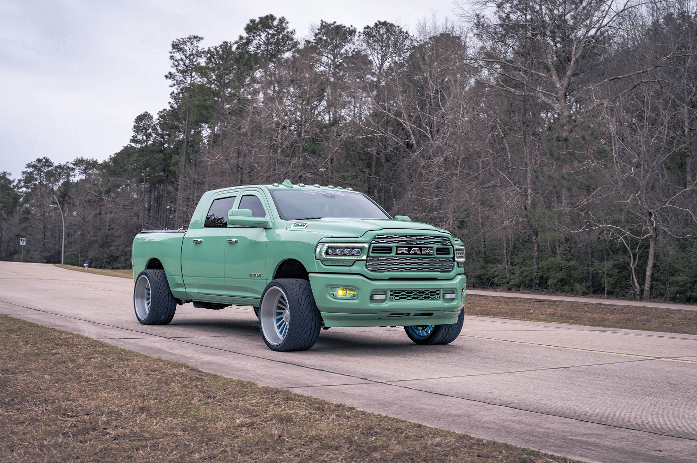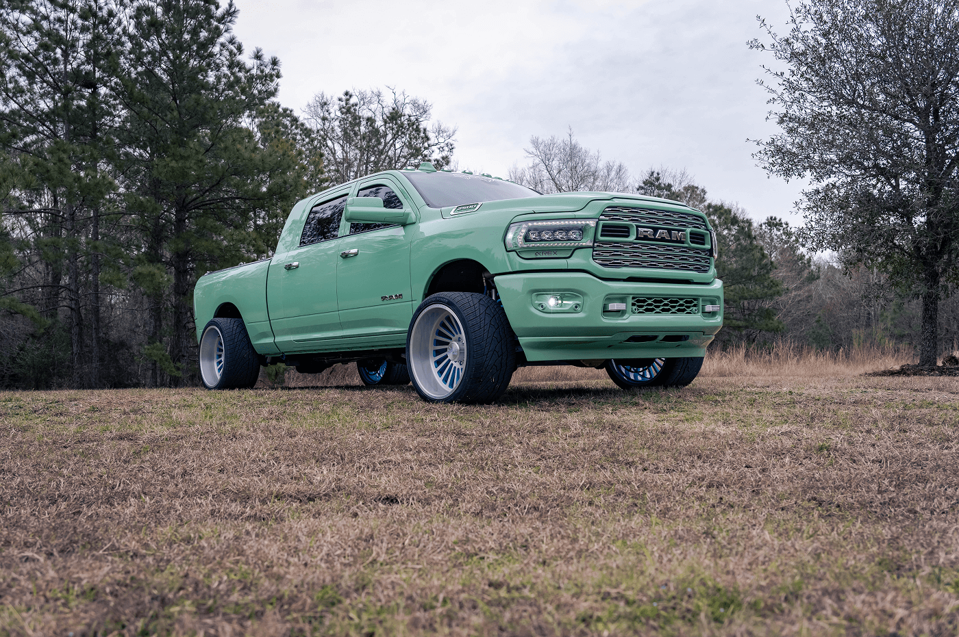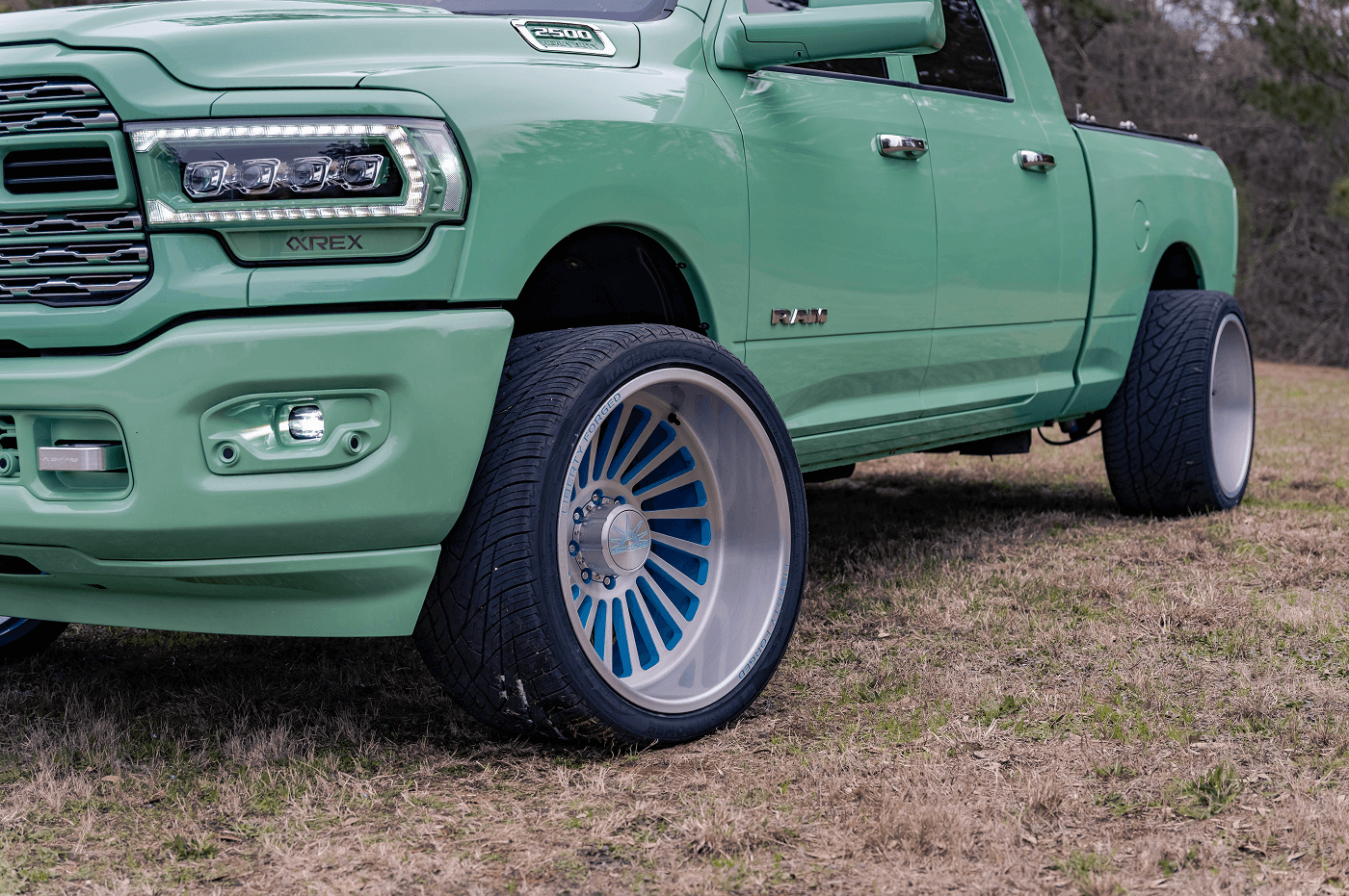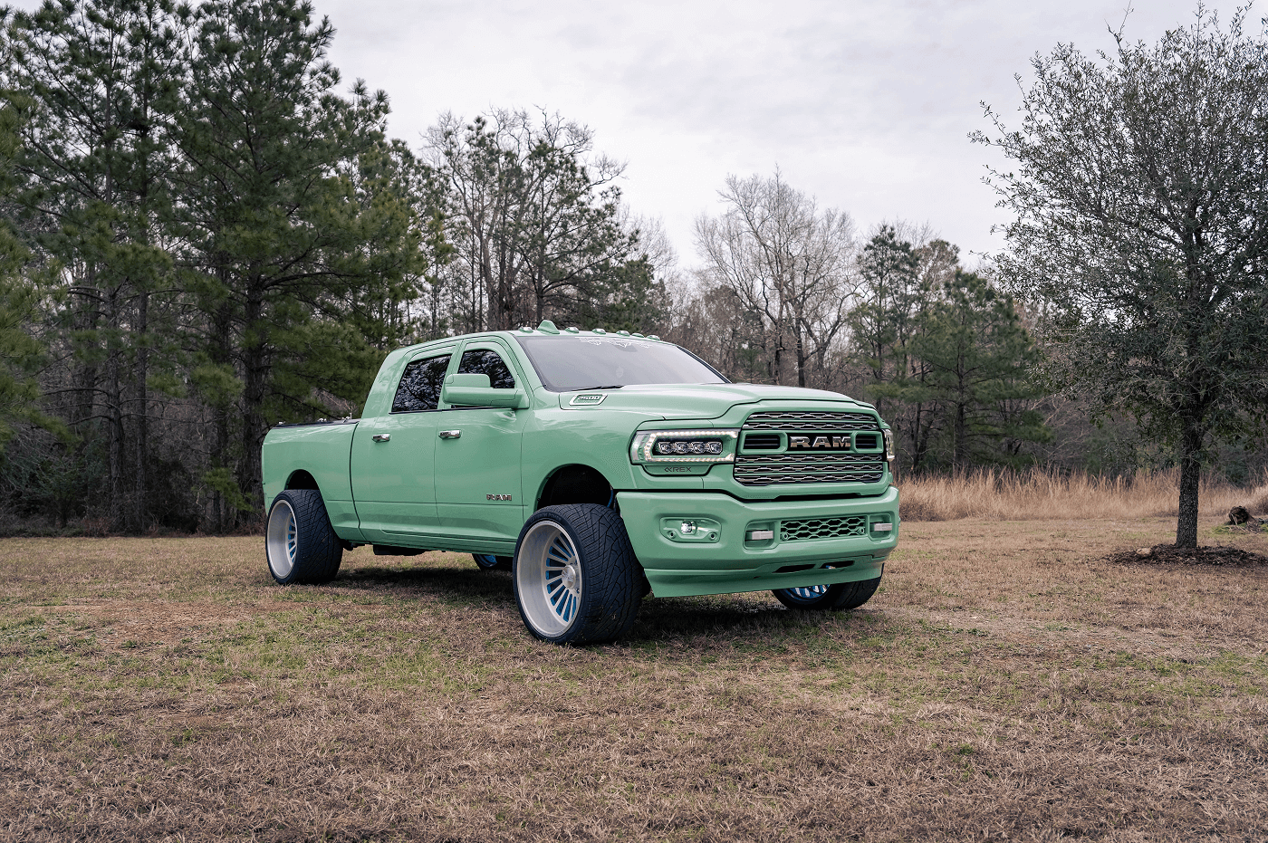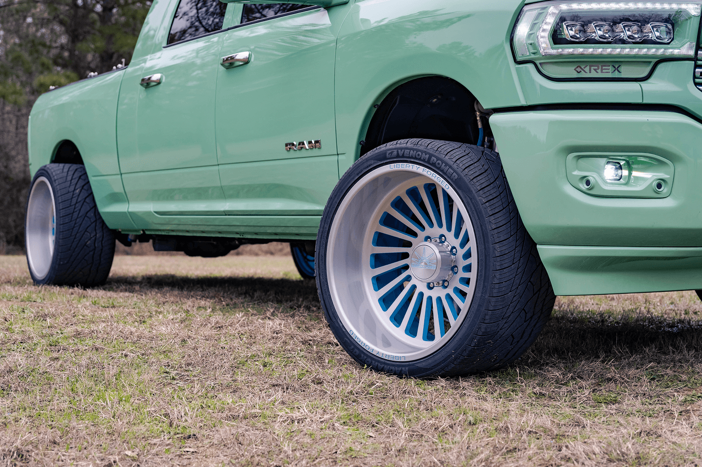 Danny Parker’s Dodge Ram 2500 Mega Cab, on Instagram at @danny.polar, is a mint green stunner that blends bold aesthetics with serious performance. This truck rolls on a squared setup of Venom Power Ragnarok GTS 405/25ZR24 tires, paired with Liberty Forged wheels, delivering a unique stance and street-ready grip. This eye-catching build features AlphaRex lights and BAMF LEDs for illumination, a Banks Power system for enhanced performance, and a Fass Fuel Systems upgrade for reliability. The Kicker Audio comes alive with a Mobile Toys Inc sound system, while a Limitless bed cover keeps the cargo secure.