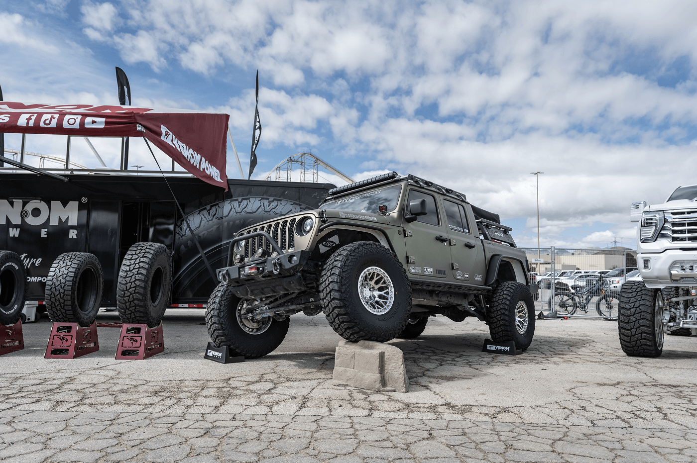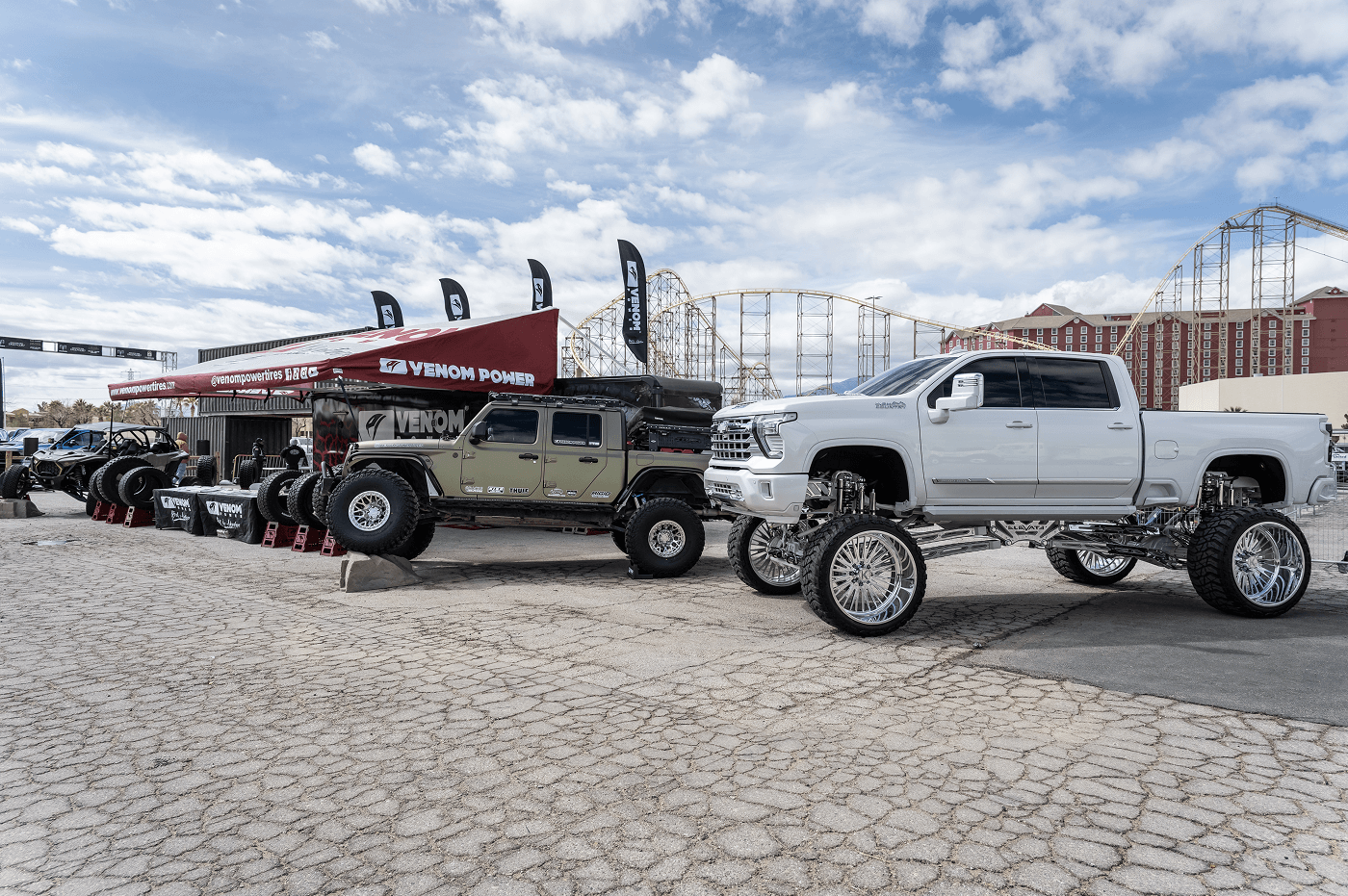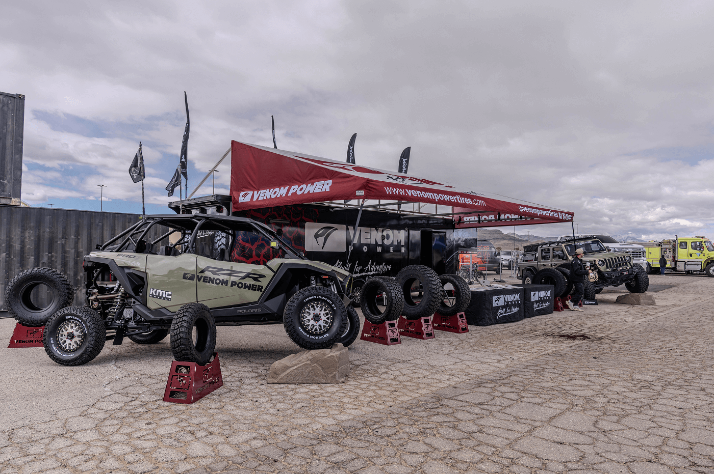 Venom Power Tires took on the 2025 Mint 400, The Great American Off-Road Race, and we brought the heat! We showcased an epic lineup of builds: a Polaris RZR Pro S for dominating the dunes, a Jeep Gladiator flexing on our all-new 40x13.50R17 Swampthing M/Ts, a fully built long-travel, go-anywhere Toyota Tacoma , and a lifted full show, full-go Chevy Silverado 2500HD High Country rolling tough on 30s. From our setup in Downtown Vegas to the Primm starting line, we were there, showing off the power, style, and grit of Venom Power Tires. Hit that subscribe button and check out the action from the 2025 Mint 400 which was held on March 5-9, 2025!
