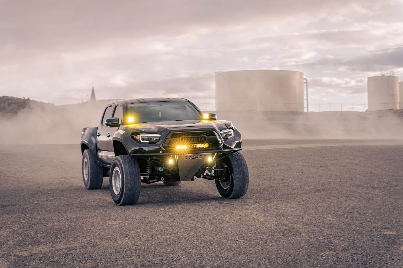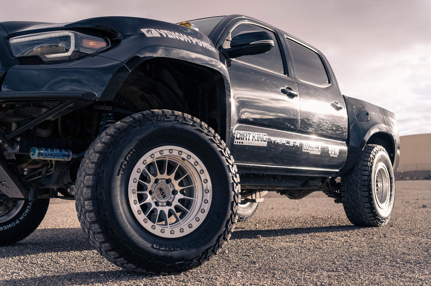 Robert Pena’s 2016 Toyota Tacoma, known as @Baja_Yota on Instagram, is an off-road beast built to dominate any terraion. It rides on Venom Power Trail Hunter R/T 35x12.50R17LT tires, paired with SSW bead lock wheels for unyielding grip and durability. The suspension setup is top-tier, featuring 2.5 King coilovers and triple bypasses, a Dirt King Long Travel Kit up front, and a rear spring-under kit with a Dirt King Bed Cage for ultimate clearance. A Fab Lab custom bumper, McNeil front fenders, and Advanced Fiberglass bedsides give it a fierce, custom stance, while Triple R lights cut through the toughest conditions. This Tacoma is a showcase of Robert’s dedication to off-road excellence, blending hardcore performance with standout style.
