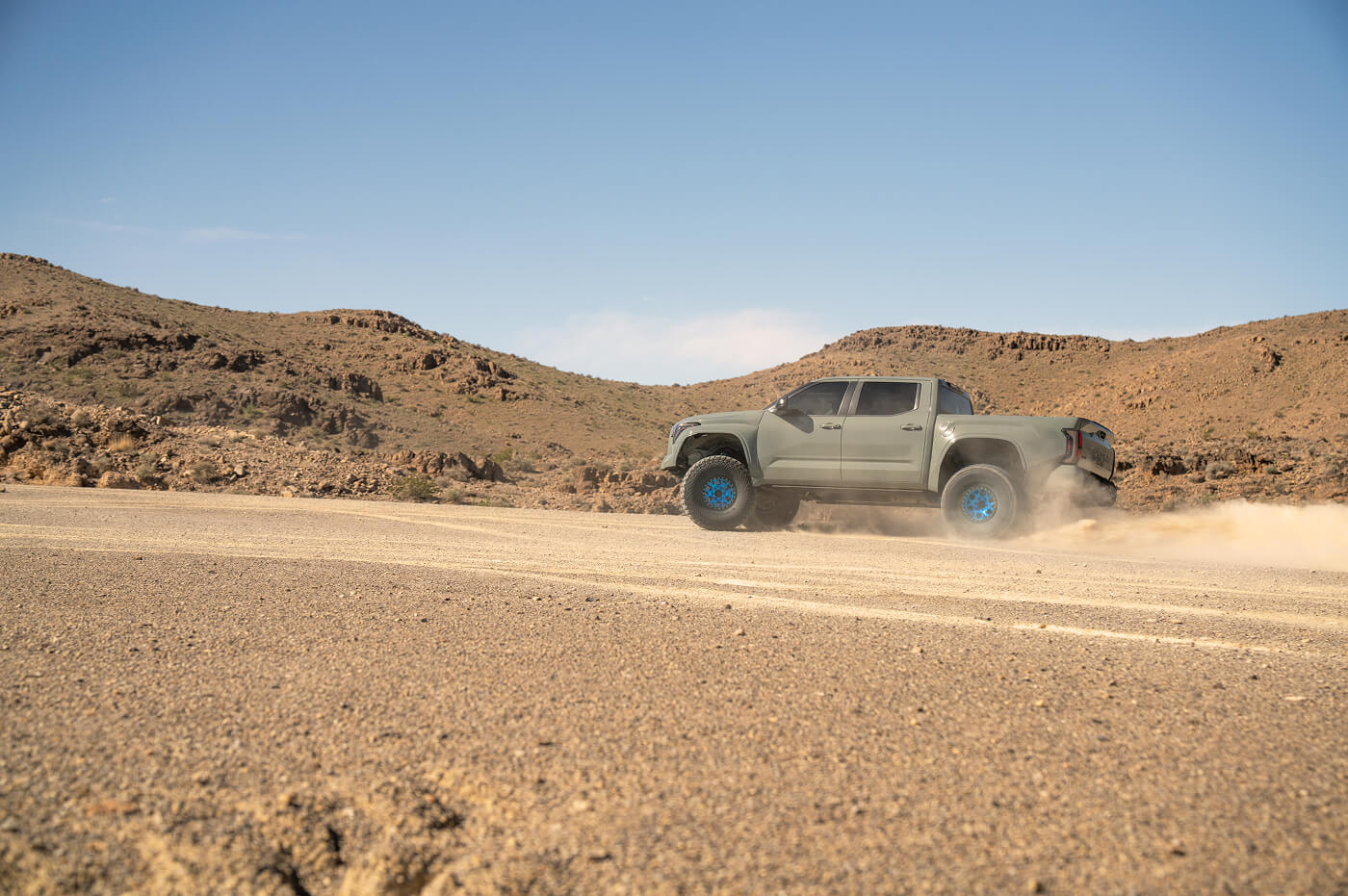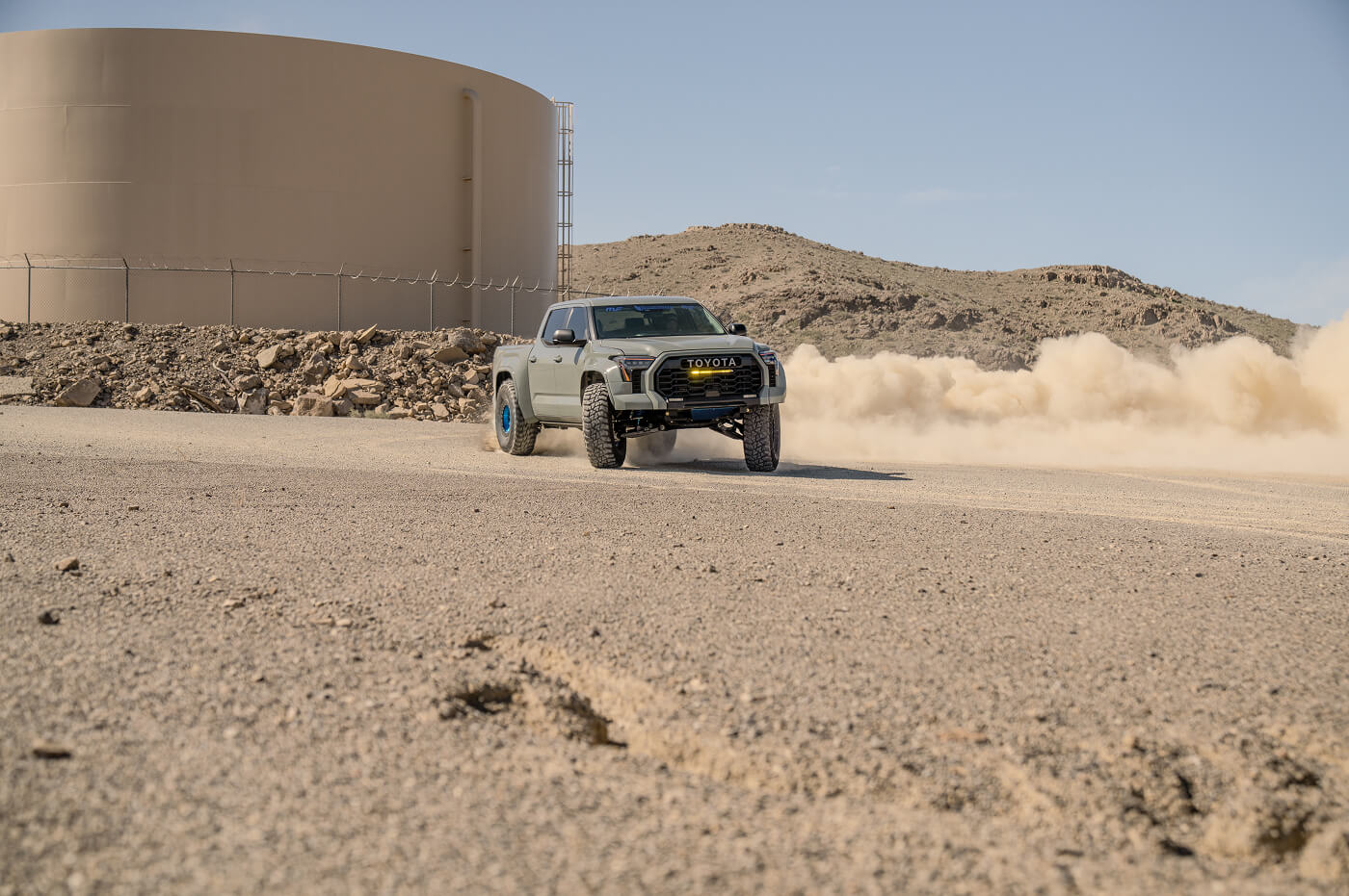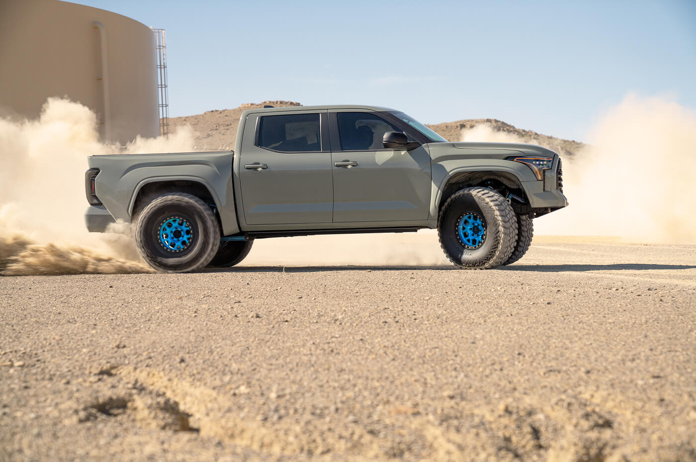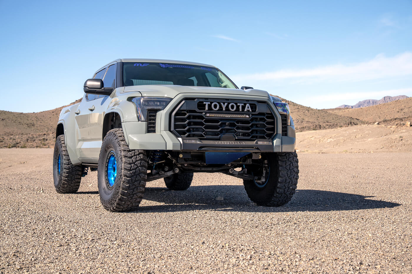 Anthony West (@team__west) has built the ultimate daily-driven desert truck. His Toyota Tundra sits aggressively on 40x13.50R17 Venom Power Swampthing M/T tires, wrapped around 17-inch KMC Mesa Forged Beadlock wheels. Paired with long-travel suspension for smooth highway-to-trail transitions, the KMC beadlocks keep the 40s firmly seated under pressure. By prioritizing versatile off-road performance modifications, Anthony’s Tundra effortlessly rips through Southern California desert lines, whoops and sand bowls, proving you don't have to sacrifice street comfort for serious desert prowess.