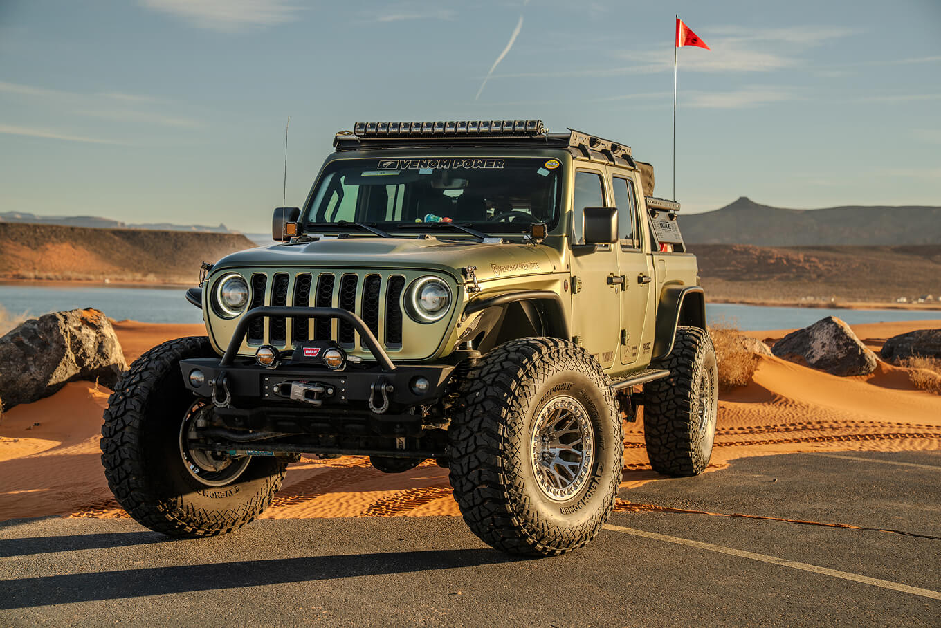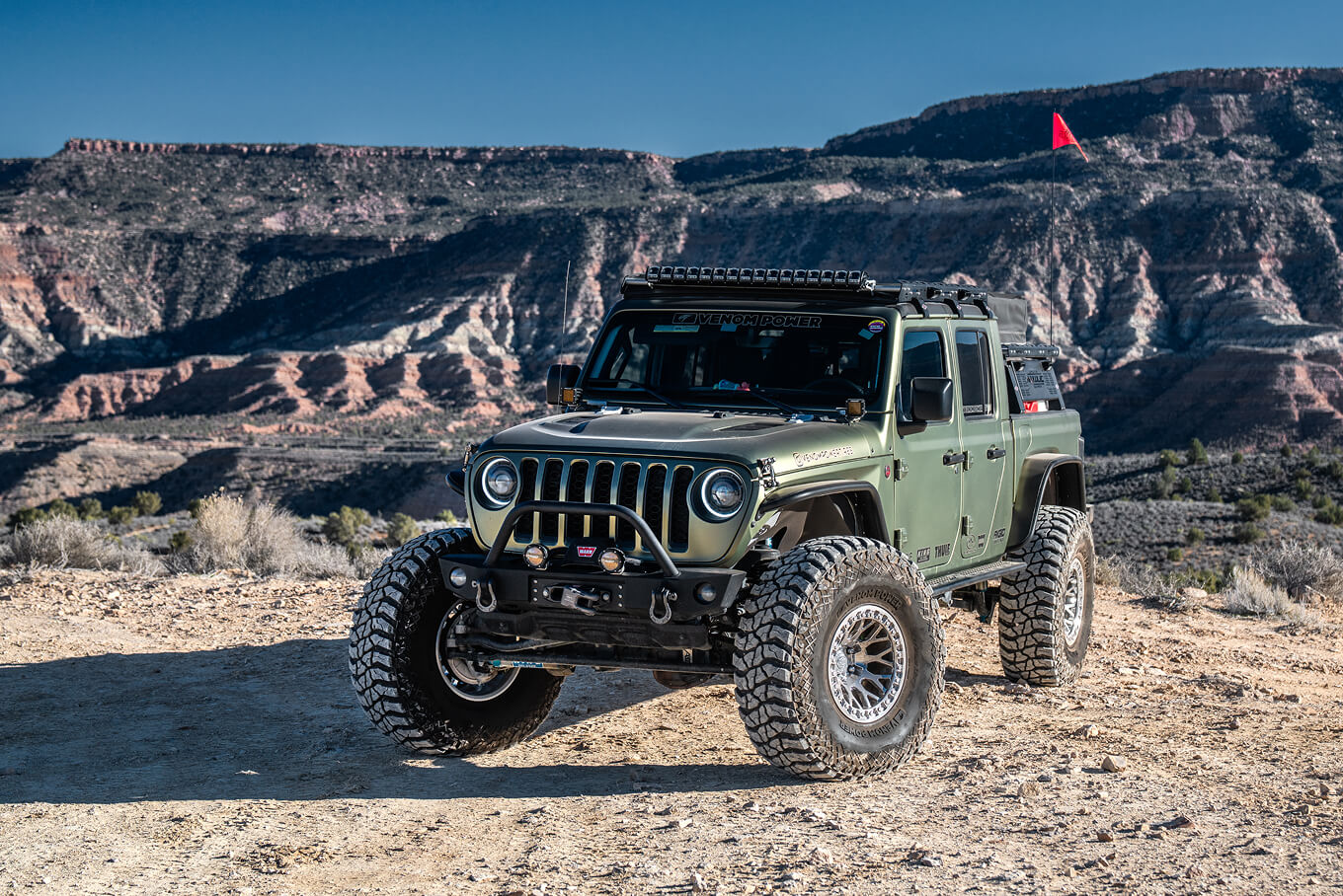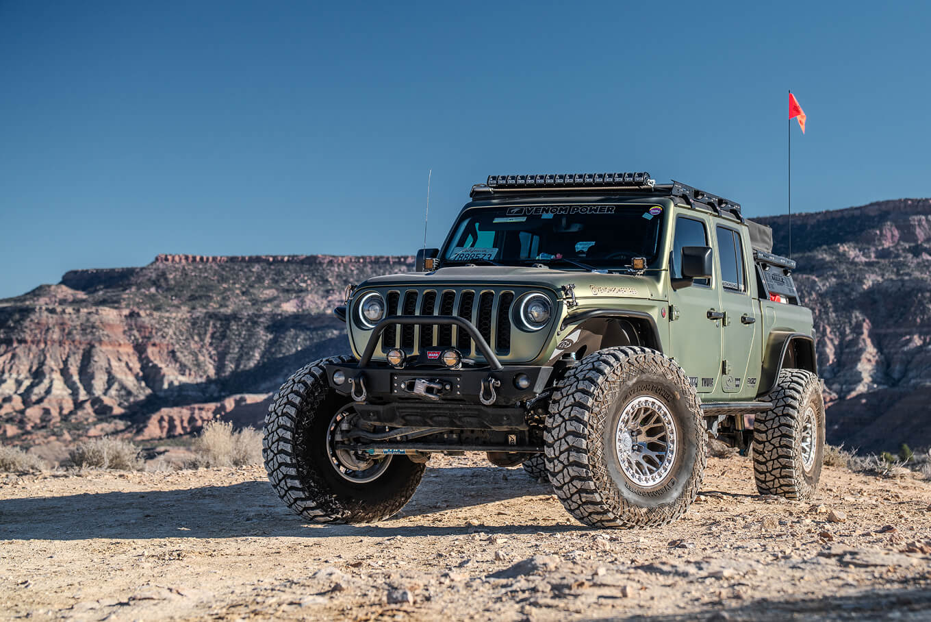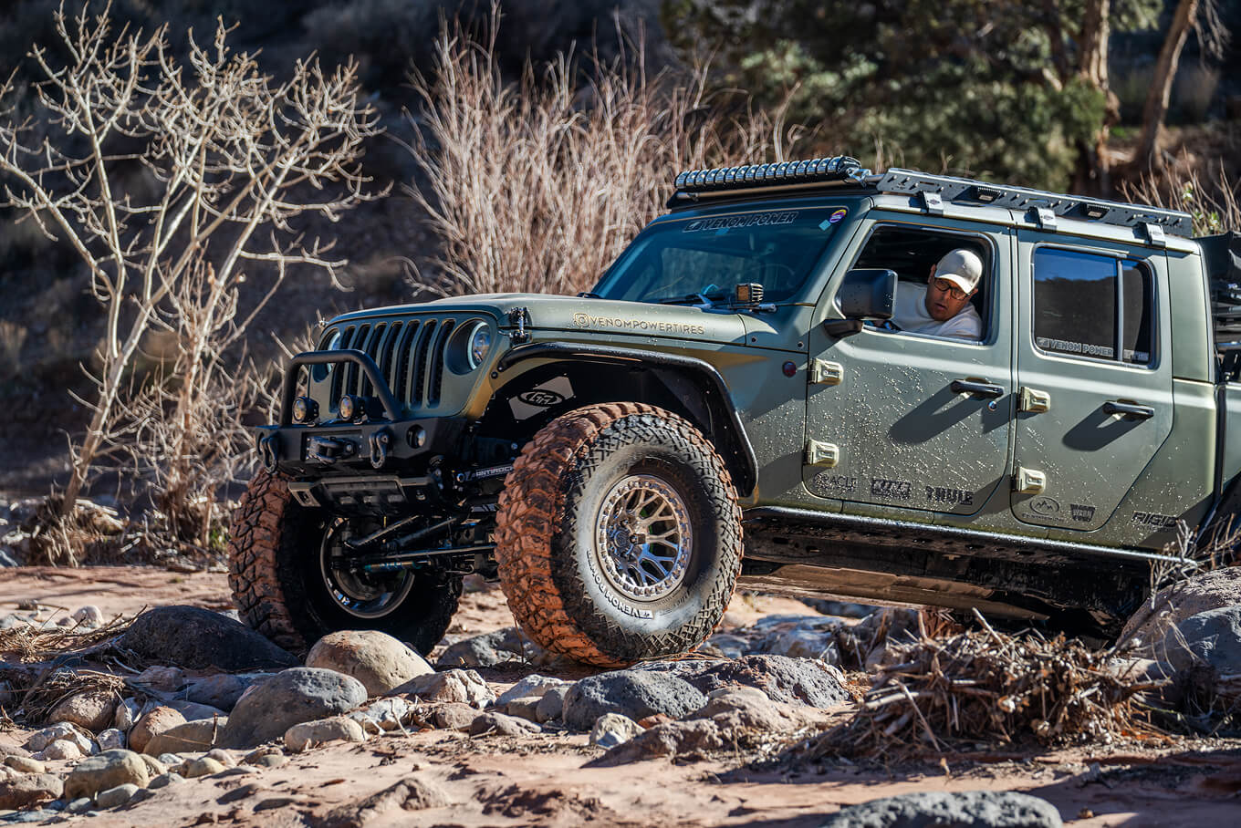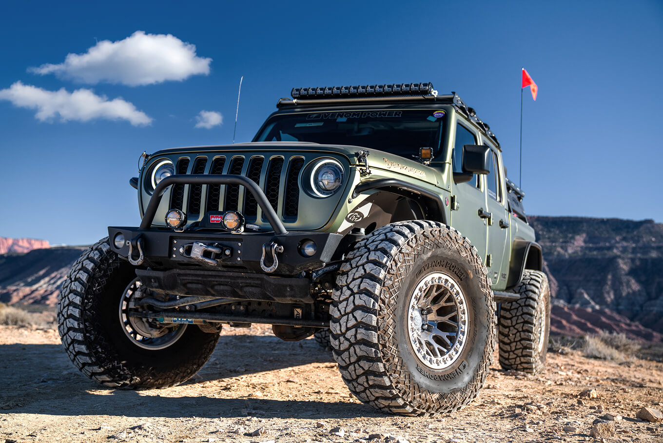 A modern, high-traction mud-terrain tire with striking aesthetics complements its ability to conquer rugged terrain.