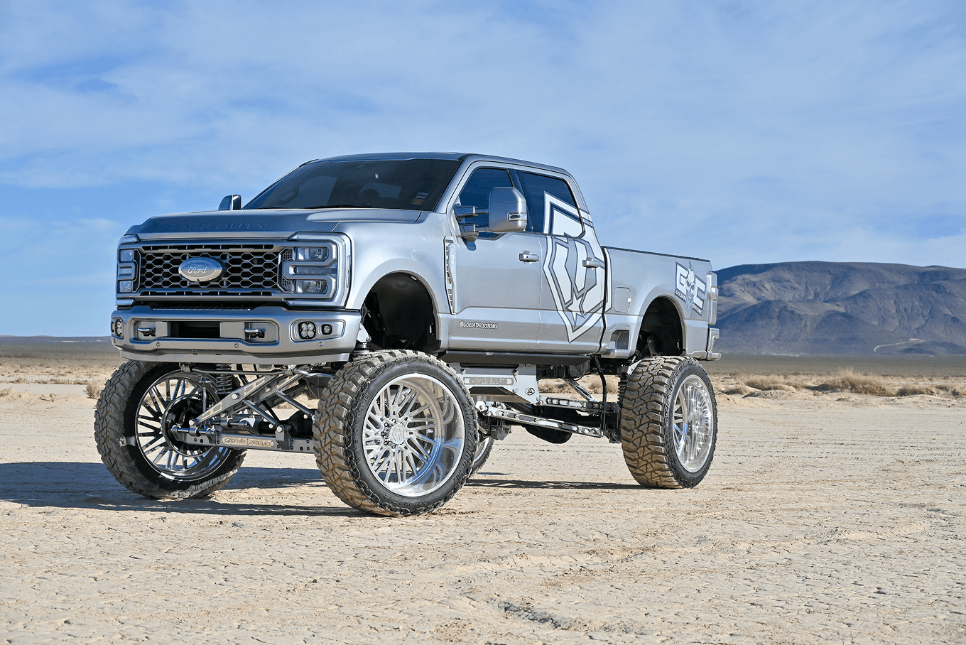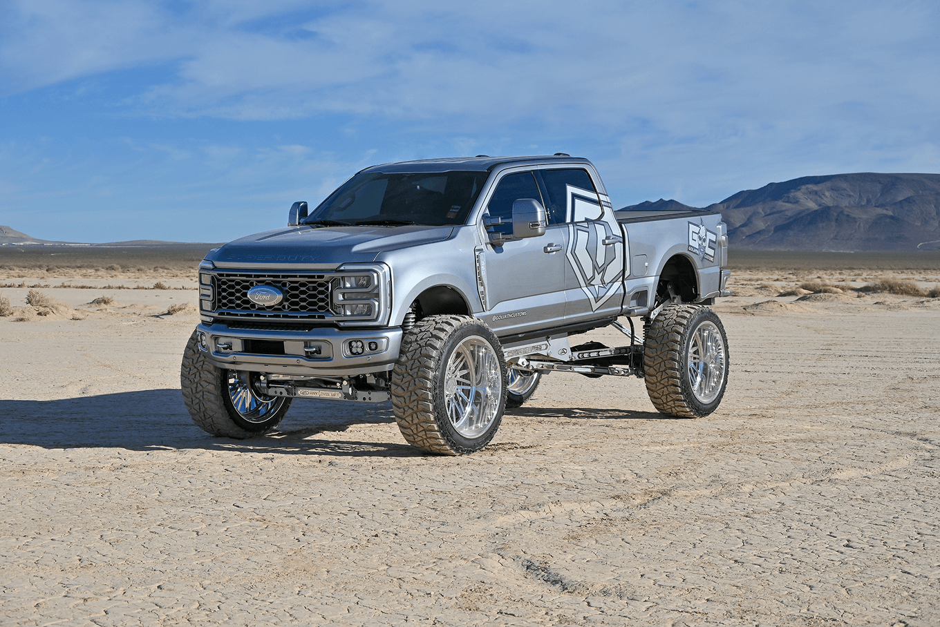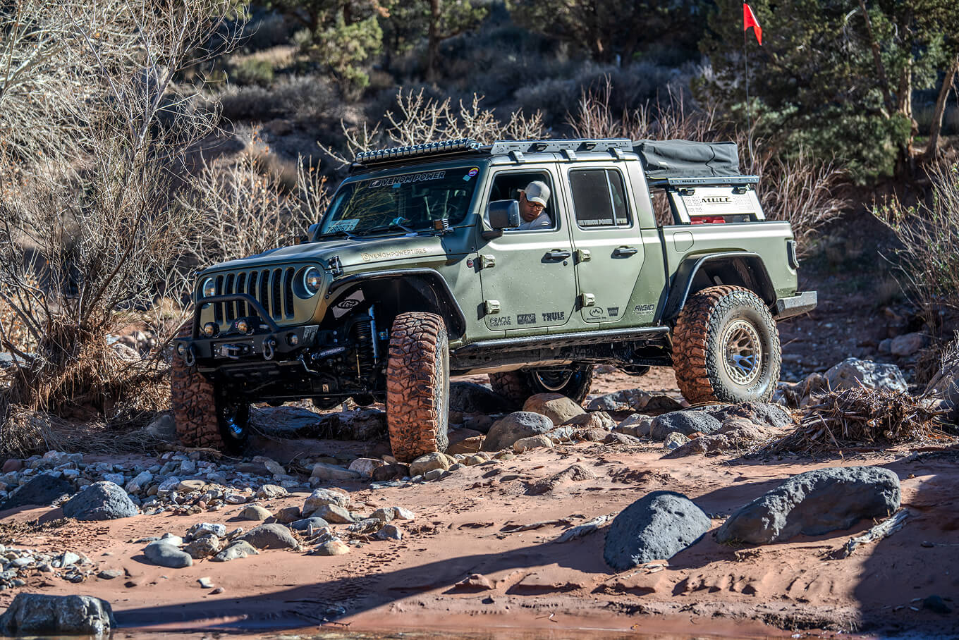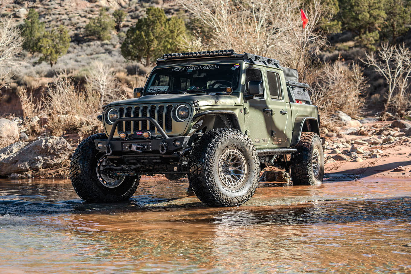 A modern, high-traction mud-terrain tire with striking aesthetics complements its ability to conquer rugged terrain.