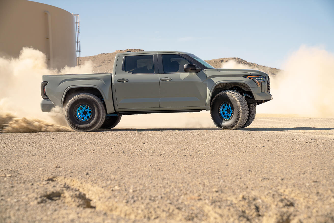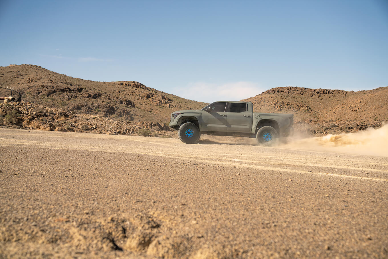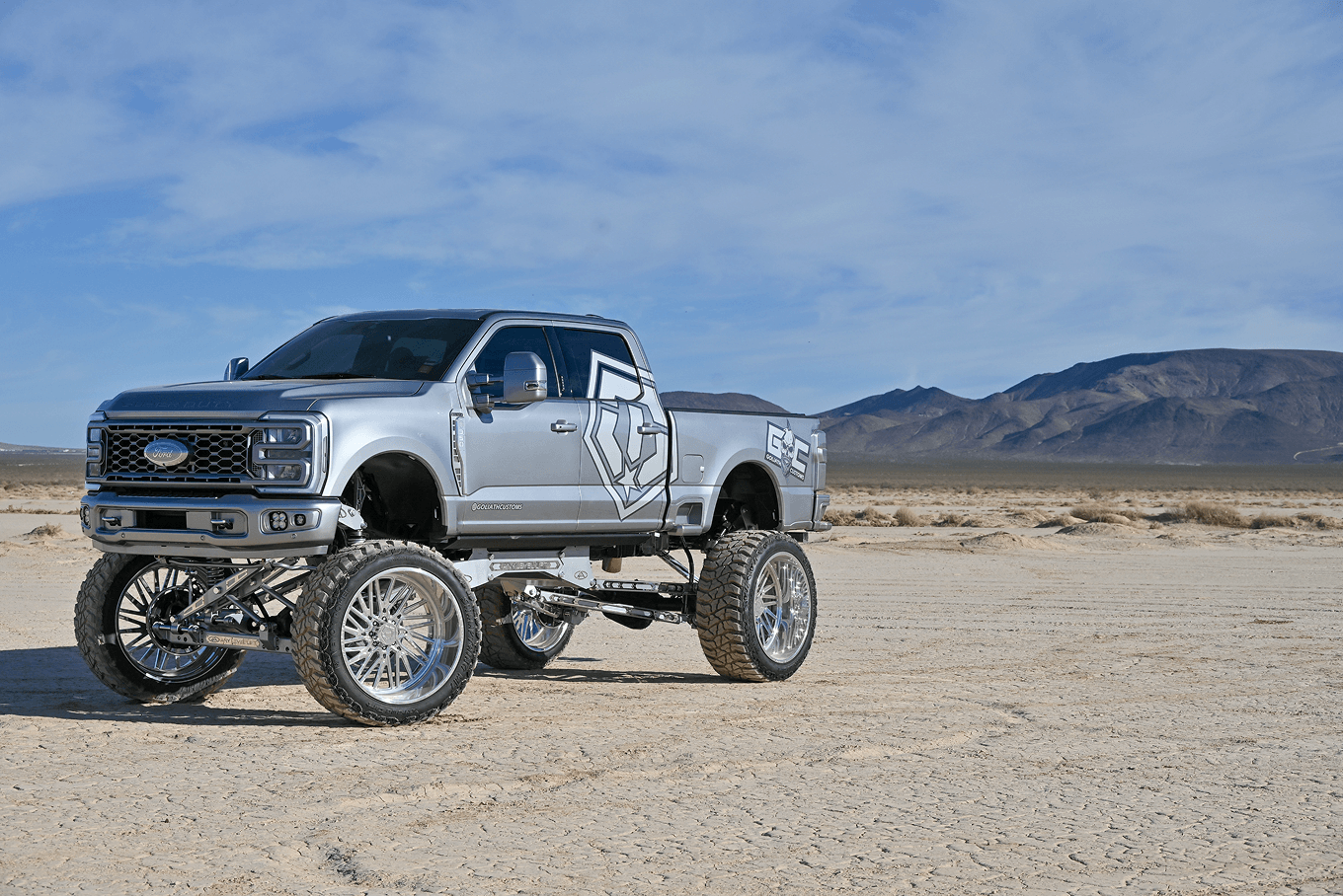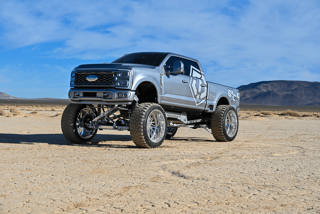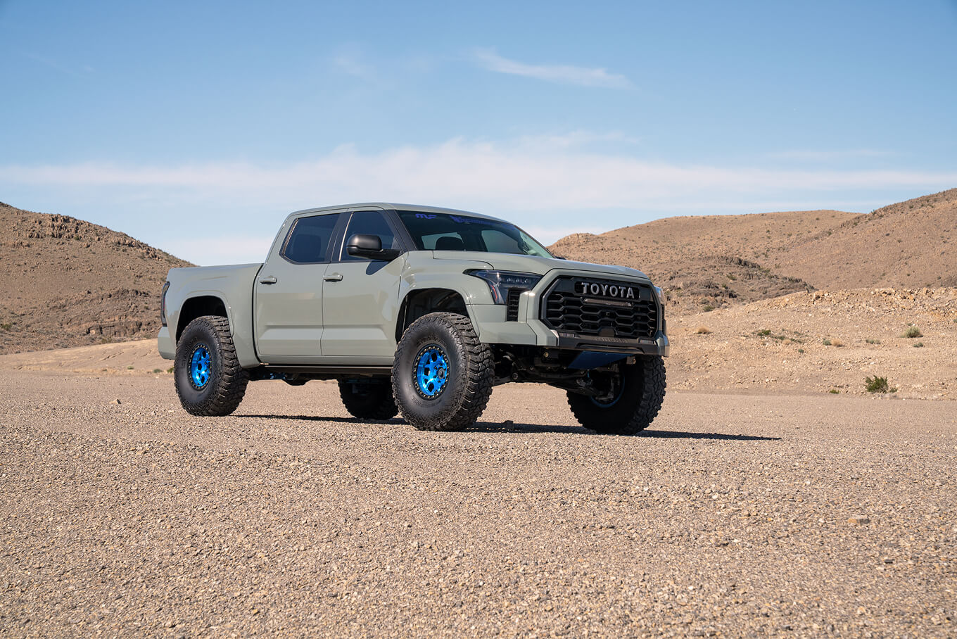 A modern, high-traction mud-terrain tire with striking aesthetics complements its ability to conquer rugged terrain.