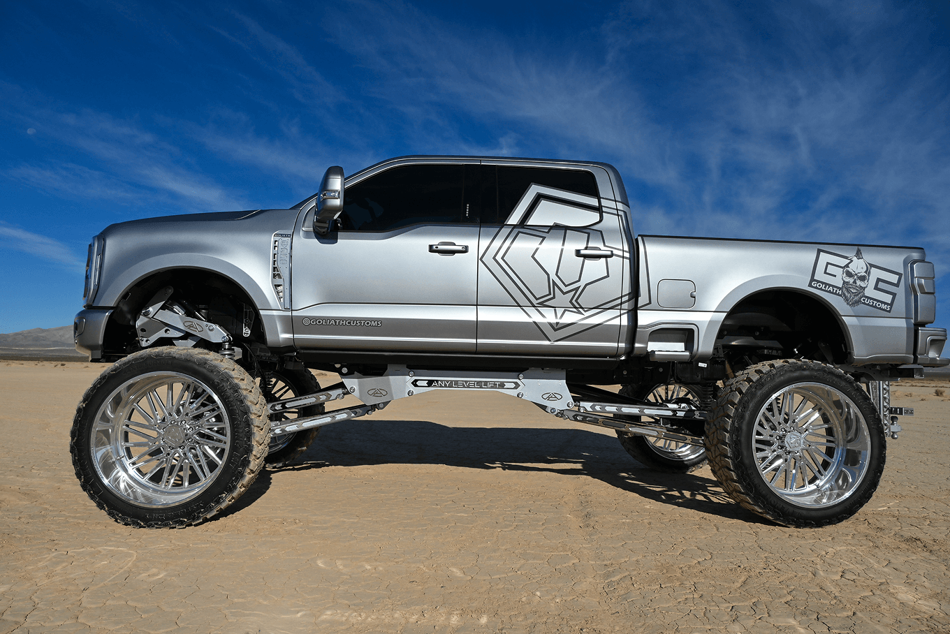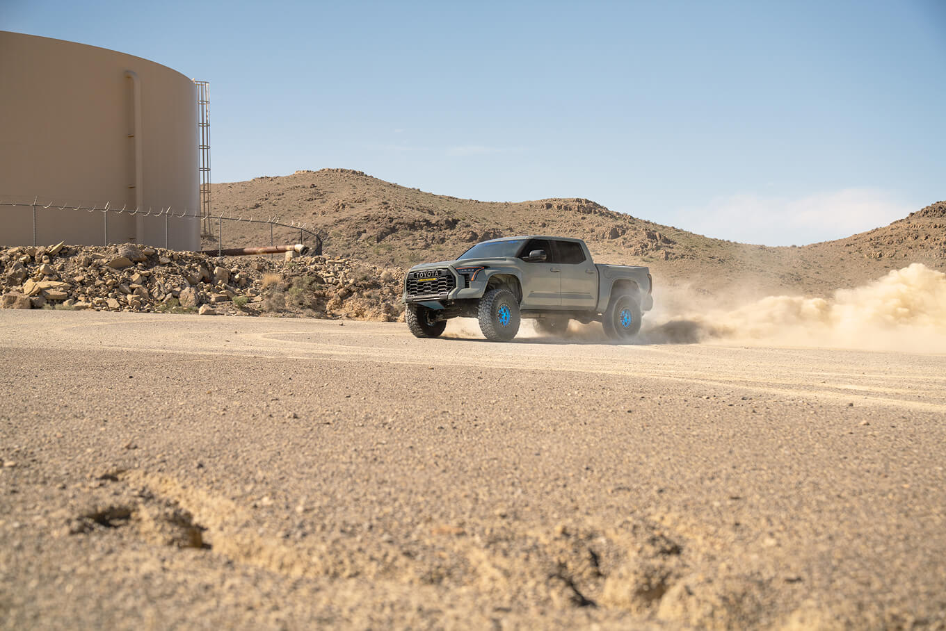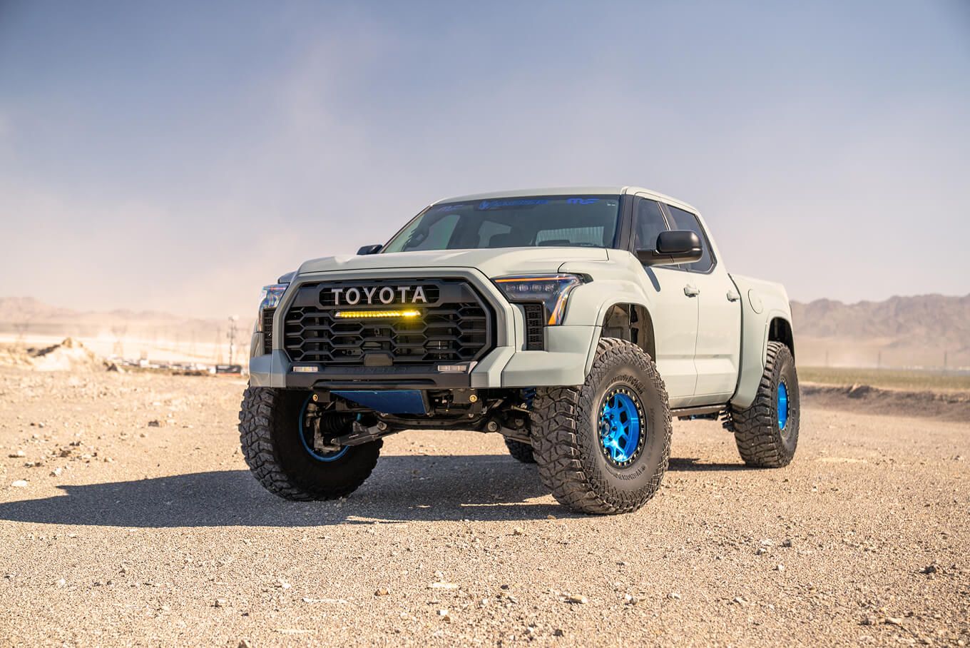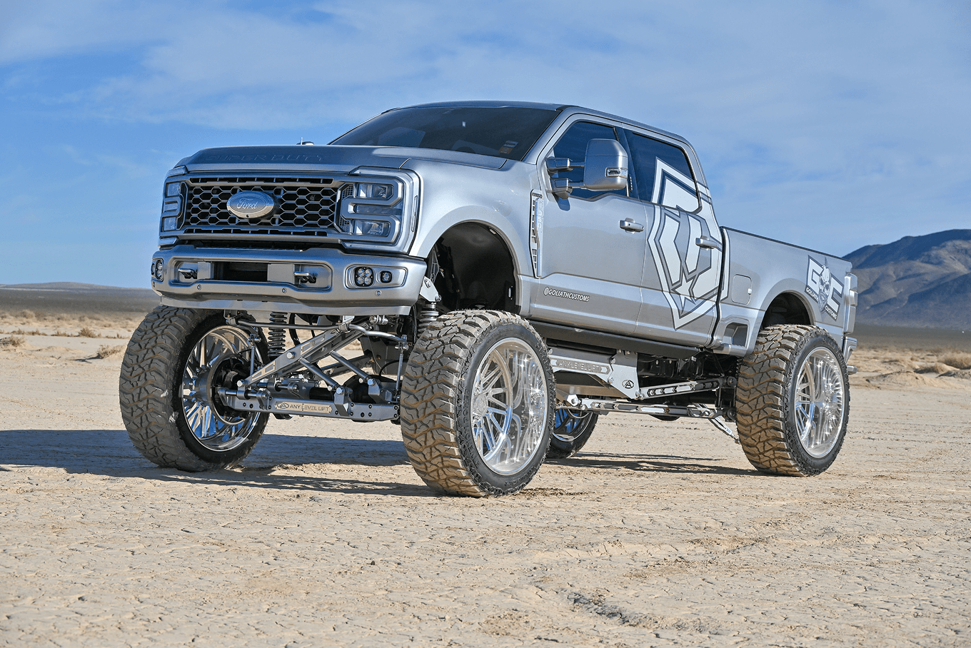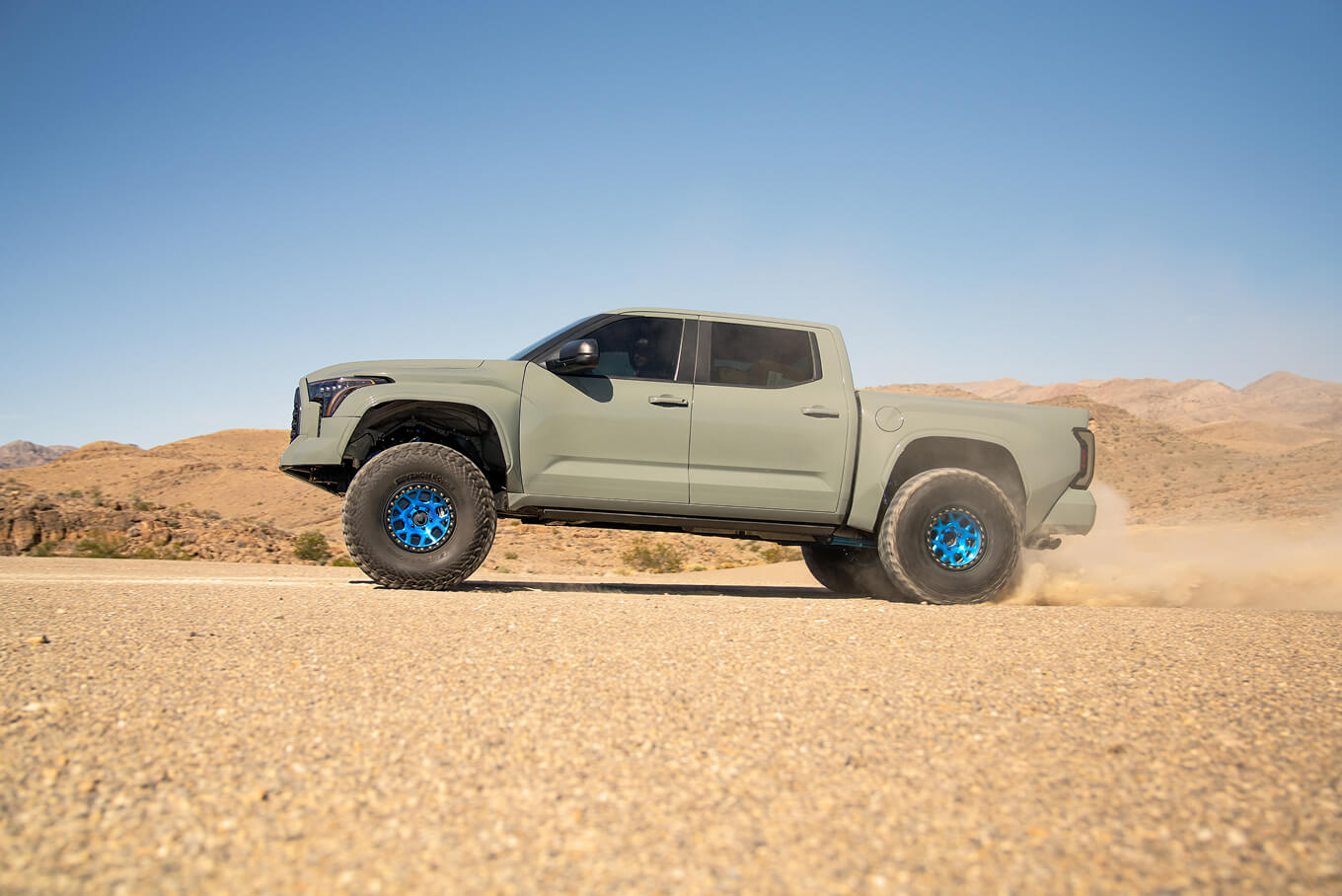 A modern, high-traction mud-terrain tire with striking aesthetics complements its ability to conquer rugged terrain.