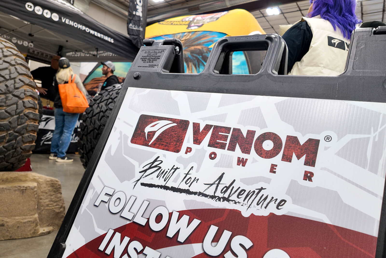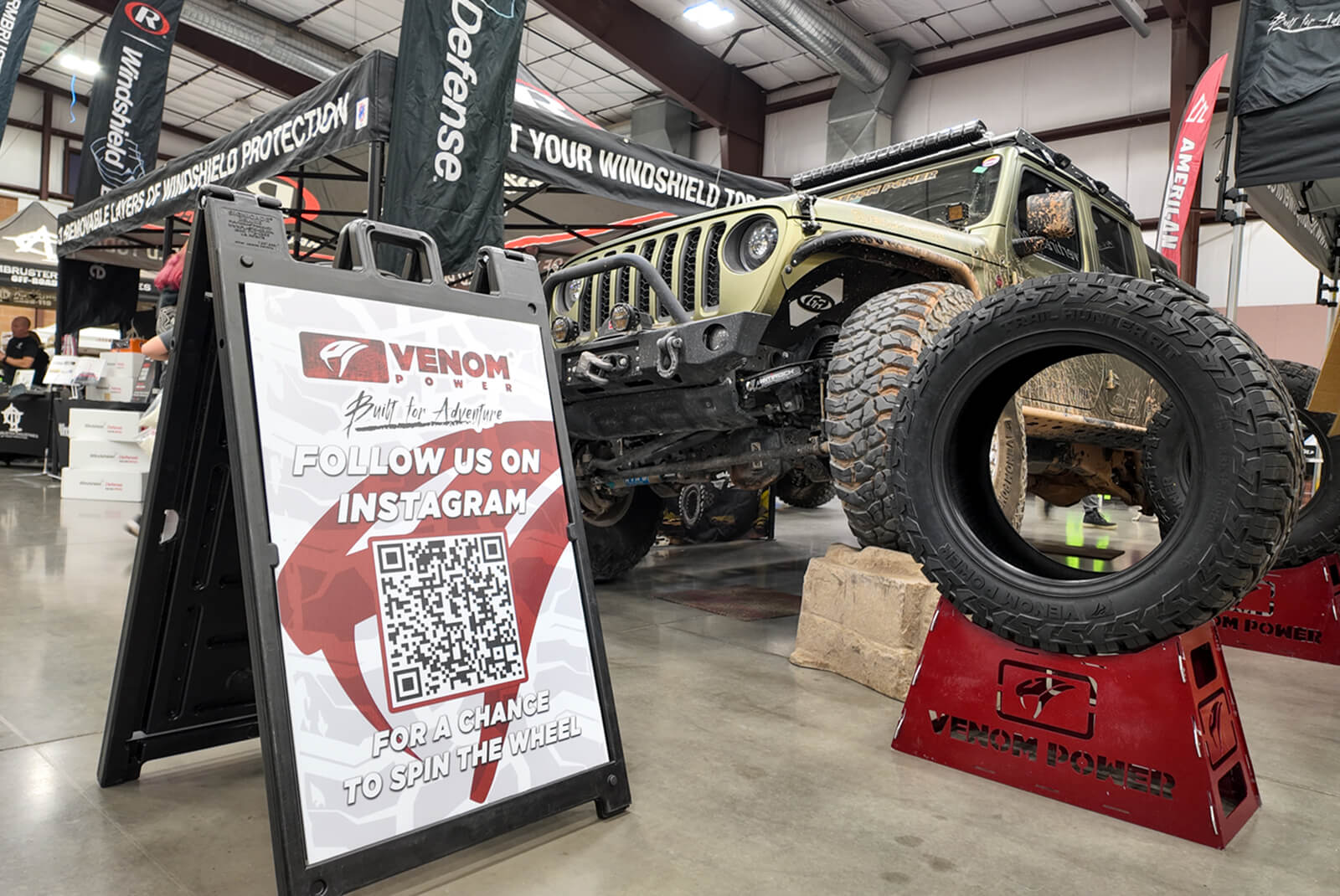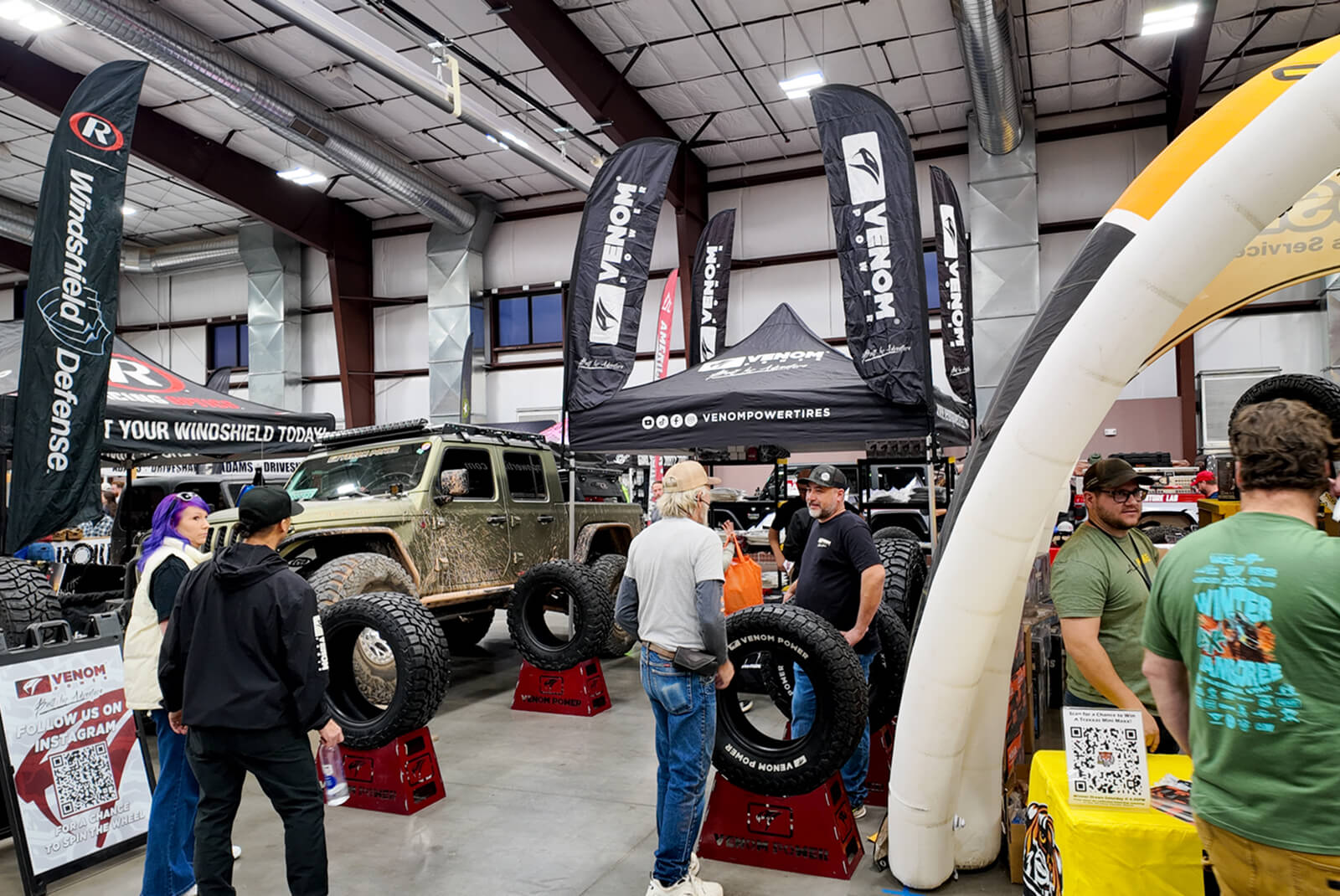 Inside the vendor show, the Venom Power booth showcased the 40" Swampthing M/T alongside our full light-truck lineup, giving attendees a chance to see the tires up close and talk through their builds. For many, it was their first time seeing the Swampthing M/T in a 40-inch fitment mounted on real rigs.