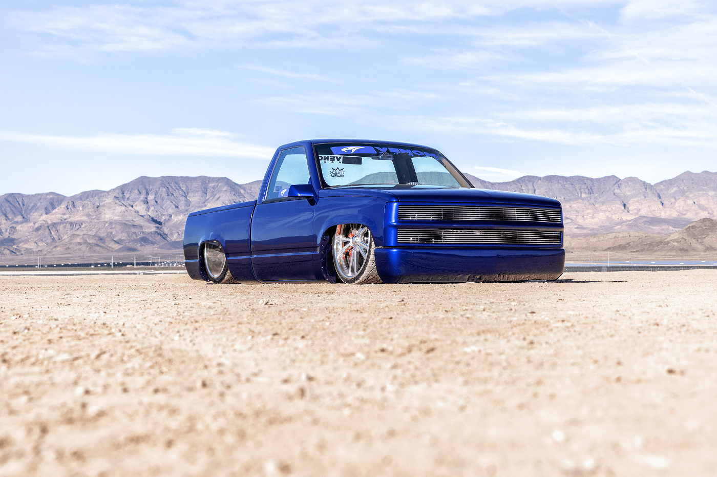 That memory became the foundation for his 1991 Chevy C1500—a former shop truck turned full-blown SEMA Show build.