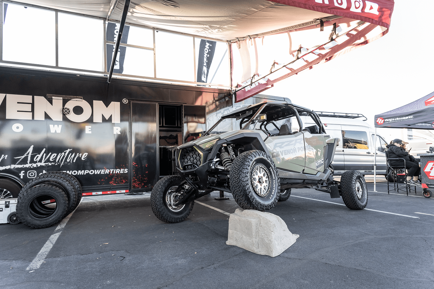 Venom Power Tires took on the 2025 Mint 400, The Great American Off-Road Race, and we brought the heat! We showcased an epic lineup of builds: a Polaris RZR Pro S for dominating the dunes, a Jeep Gladiator flexing on our all-new 40x13.50R17 Swampthing M/Ts, a fully built long-travel, go-anywhere Toyota Tacoma , and a lifted full show, full-go Chevy Silverado 2500HD High Country rolling tough on 30s. From our setup in Downtown Vegas to the Primm starting line, we were there, showing off the power, style, and grit of Venom Power Tires. Hit that subscribe button and check out the action from the 2025 Mint 400 which was held on March 5-9, 2025!