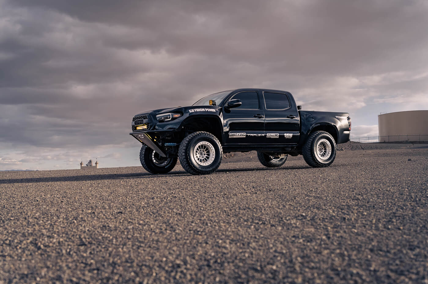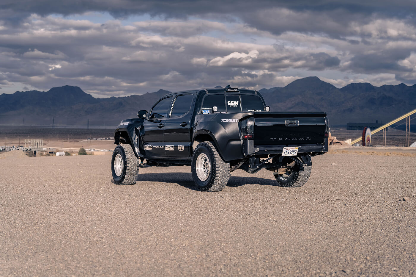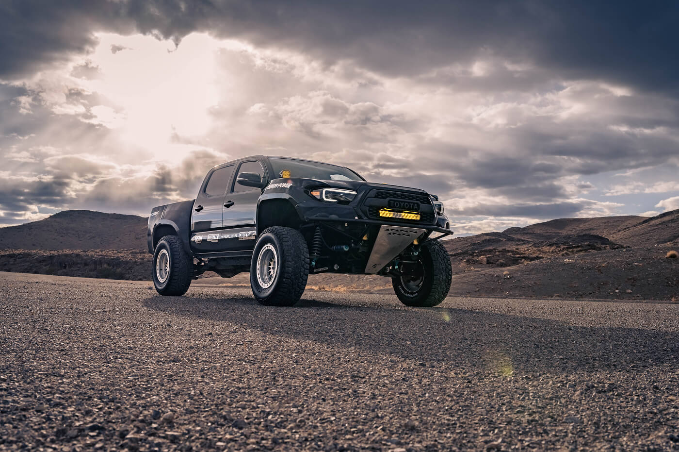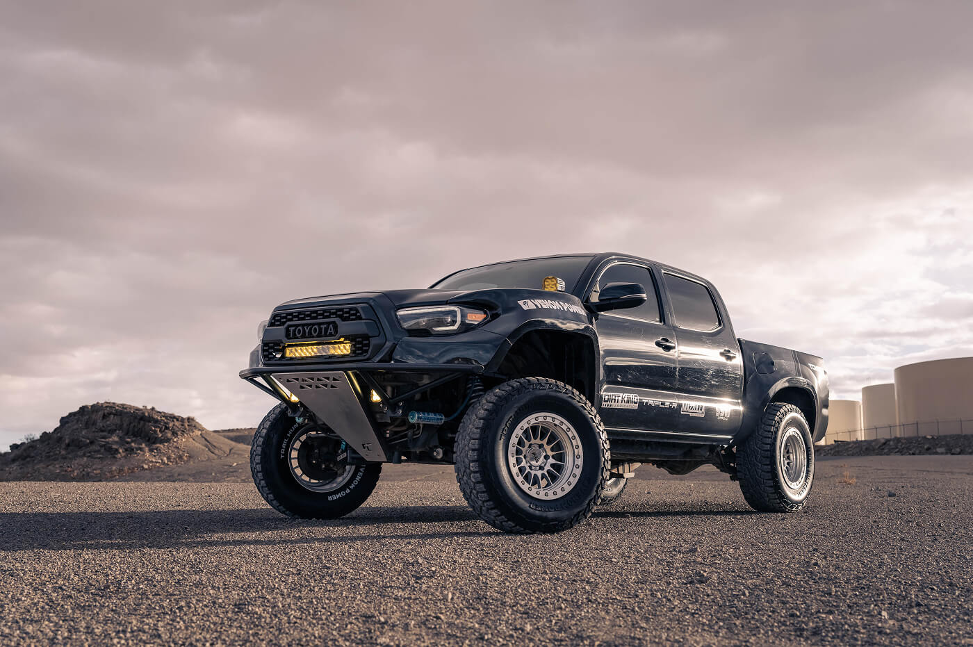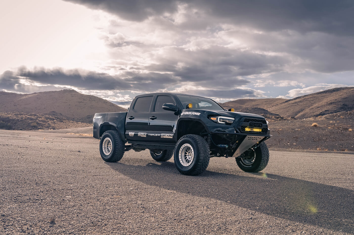 Robert Pena’s 2016 Toyota Tacoma, known as @Baja_Yota on Instagram, is an off-road beast built to dominate any terraion. It rides on Venom Power Trail Hunter R/T 35x12.50R17LT tires, paired with SSW bead lock wheels for unyielding grip and durability. The suspension setup is top-tier, featuring 2.5 King coilovers and triple bypasses, a Dirt King Long Travel Kit up front, and a rear spring-under kit with a Dirt King Bed Cage for ultimate clearance. A Fab Lab custom bumper, McNeil front fenders, and Advanced Fiberglass bedsides give it a fierce, custom stance, while Triple R lights cut through the toughest conditions. This Tacoma is a showcase of Robert’s dedication to off-road excellence, blending hardcore performance with standout style.