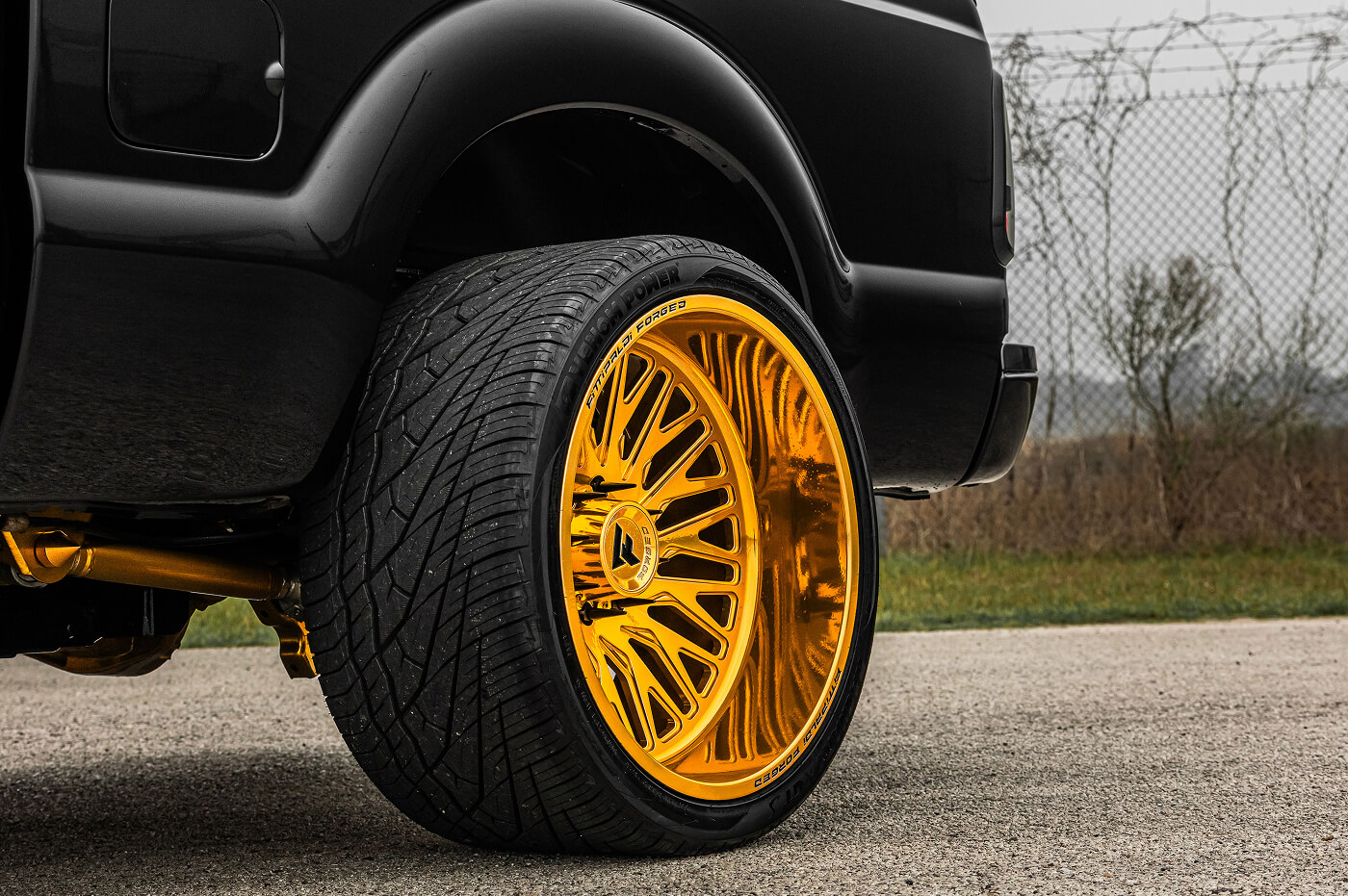 The OG Black & Gold: Joren Walthers’ Slammed Ford F-250 on 405/25ZR24 Venom Power Ragnarok GTS