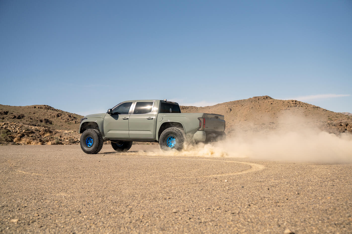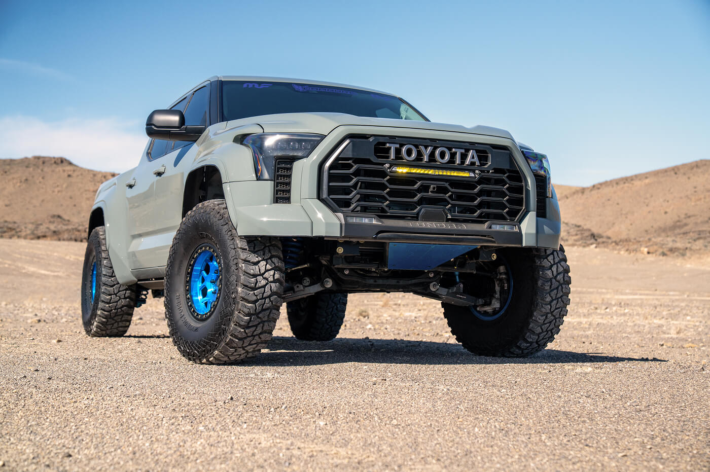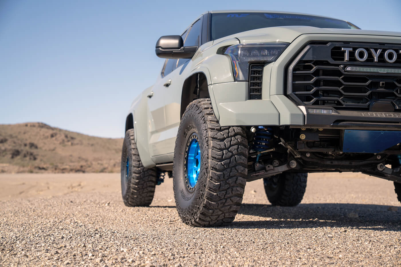 Anthony West (@team__west) has built the ultimate daily-driven desert truck. His Toyota Tundra sits aggressively on 40x13.50R17 Venom Power Swampthing M/T tires, wrapped around 17-inch KMC Mesa Forged Beadlock wheels. Paired with long-travel suspension for smooth highway-to-trail transitions, the KMC beadlocks keep the 40s firmly seated under pressure. By prioritizing versatile off-road performance modifications, Anthony’s Tundra effortlessly rips through Southern California desert lines, whoops and sand bowls, proving you don't have to sacrifice street comfort for serious desert prowess.
