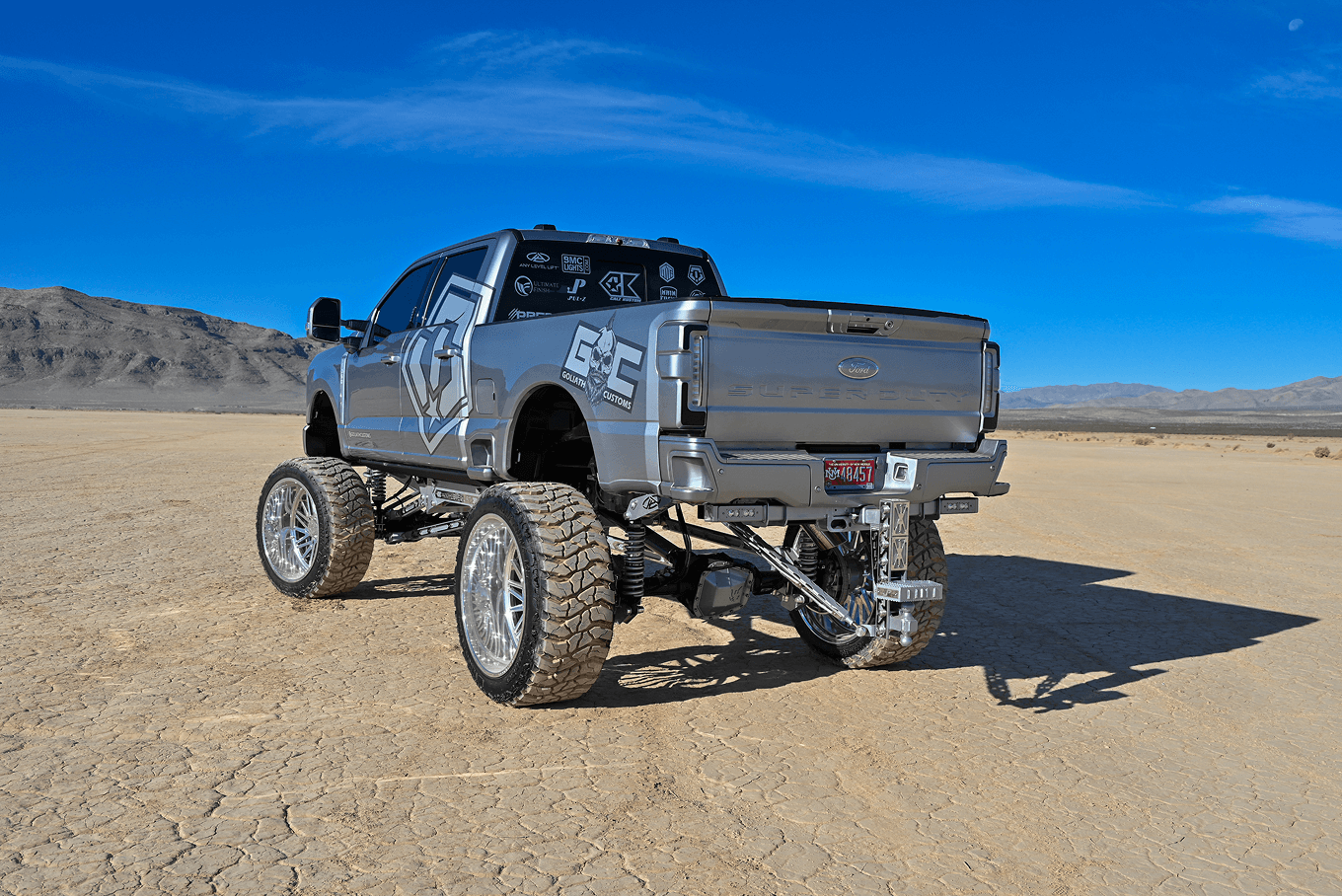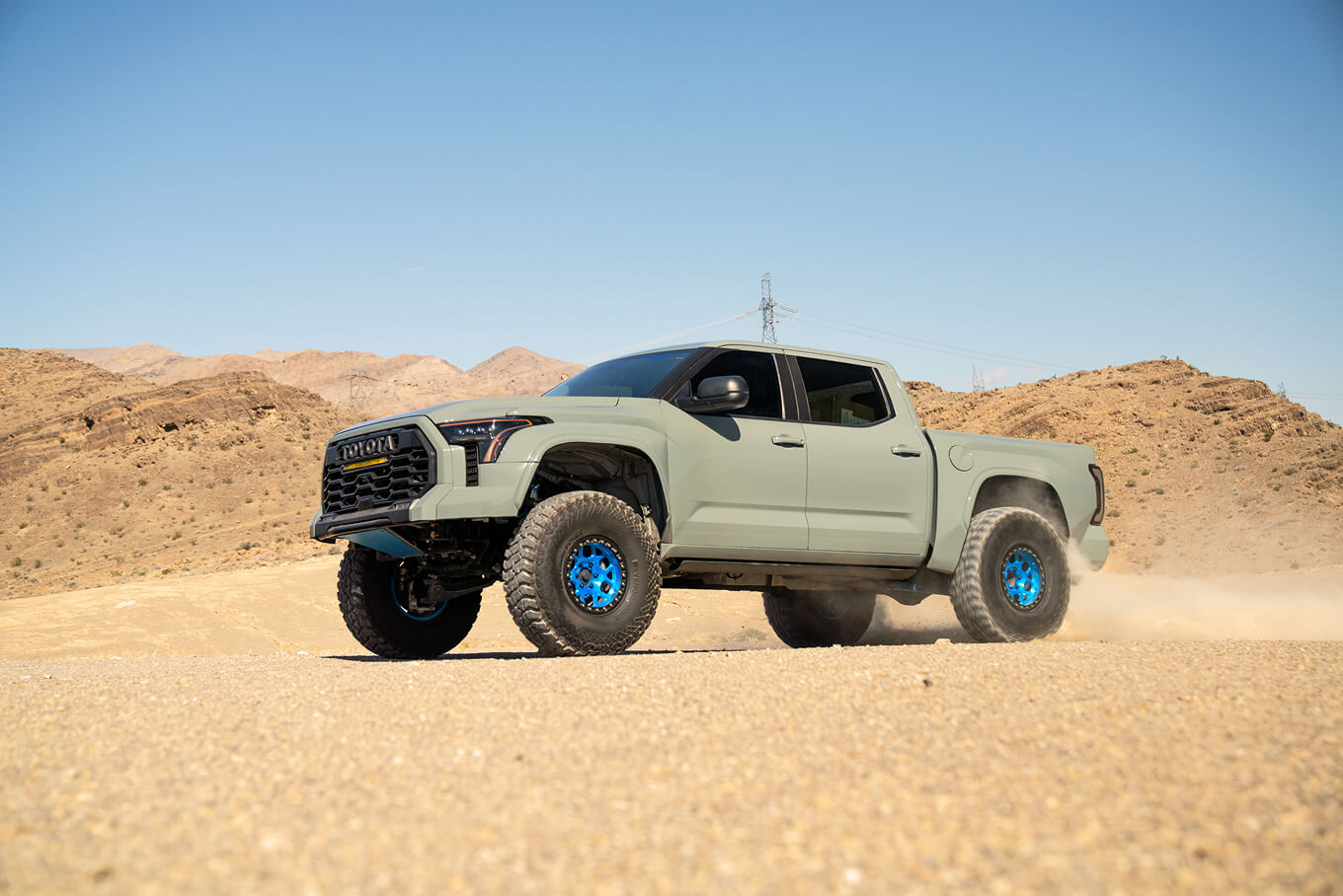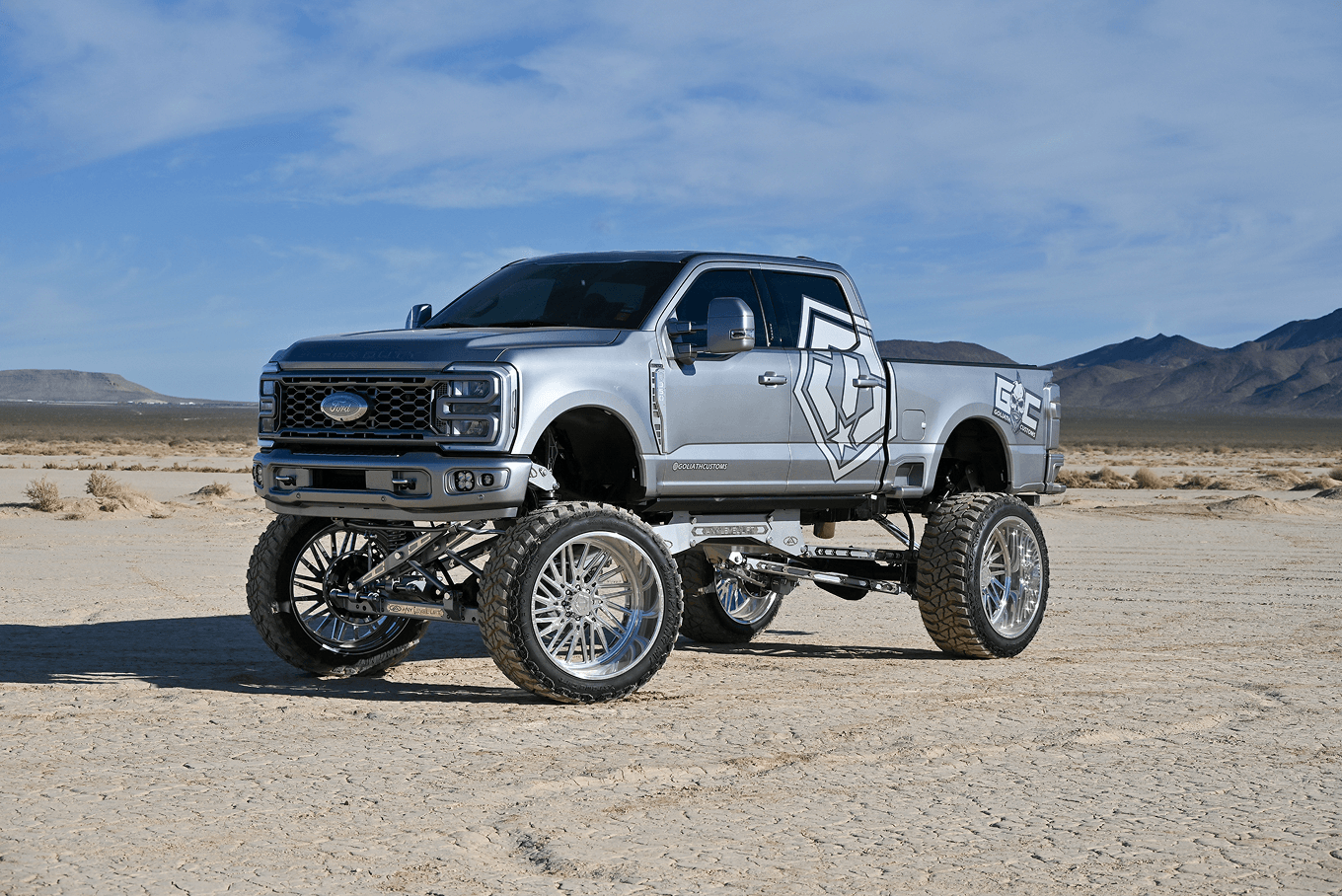 A modern, high-traction mud-terrain tire with striking aesthetics complements its ability to conquer rugged terrain.