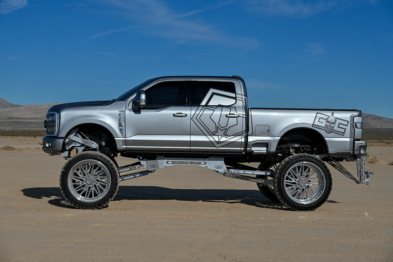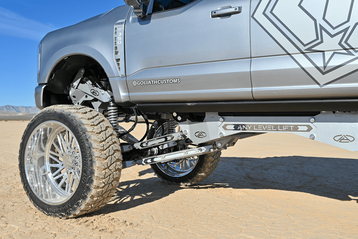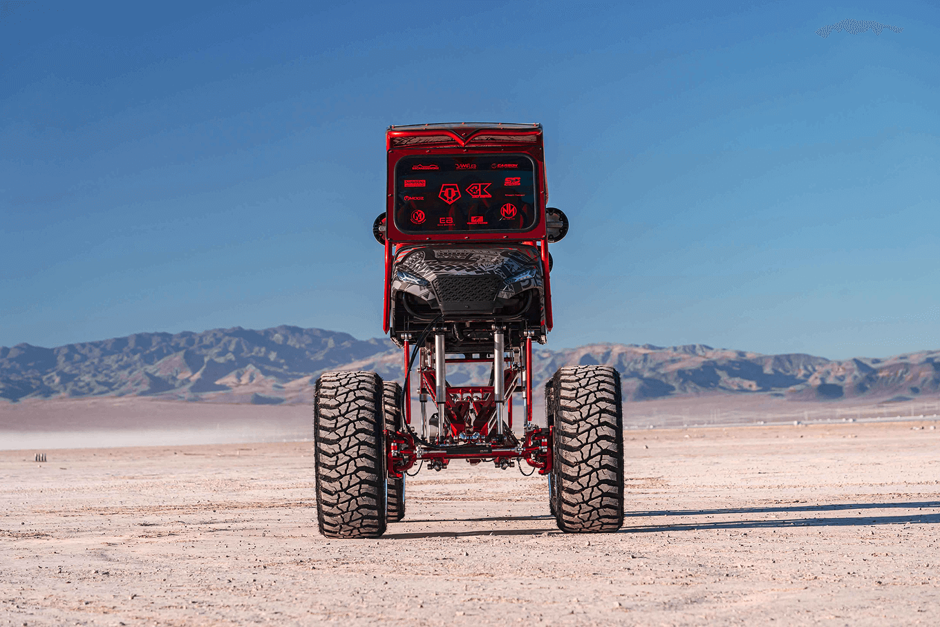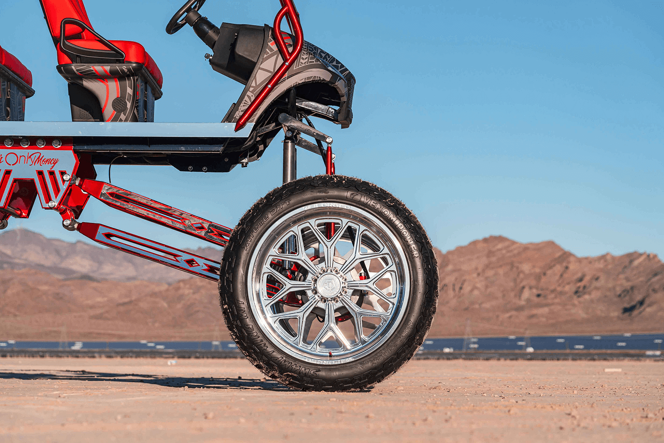 A modern, high-traction mud-terrain tire with striking aesthetics complements its ability to conquer rugged terrain.